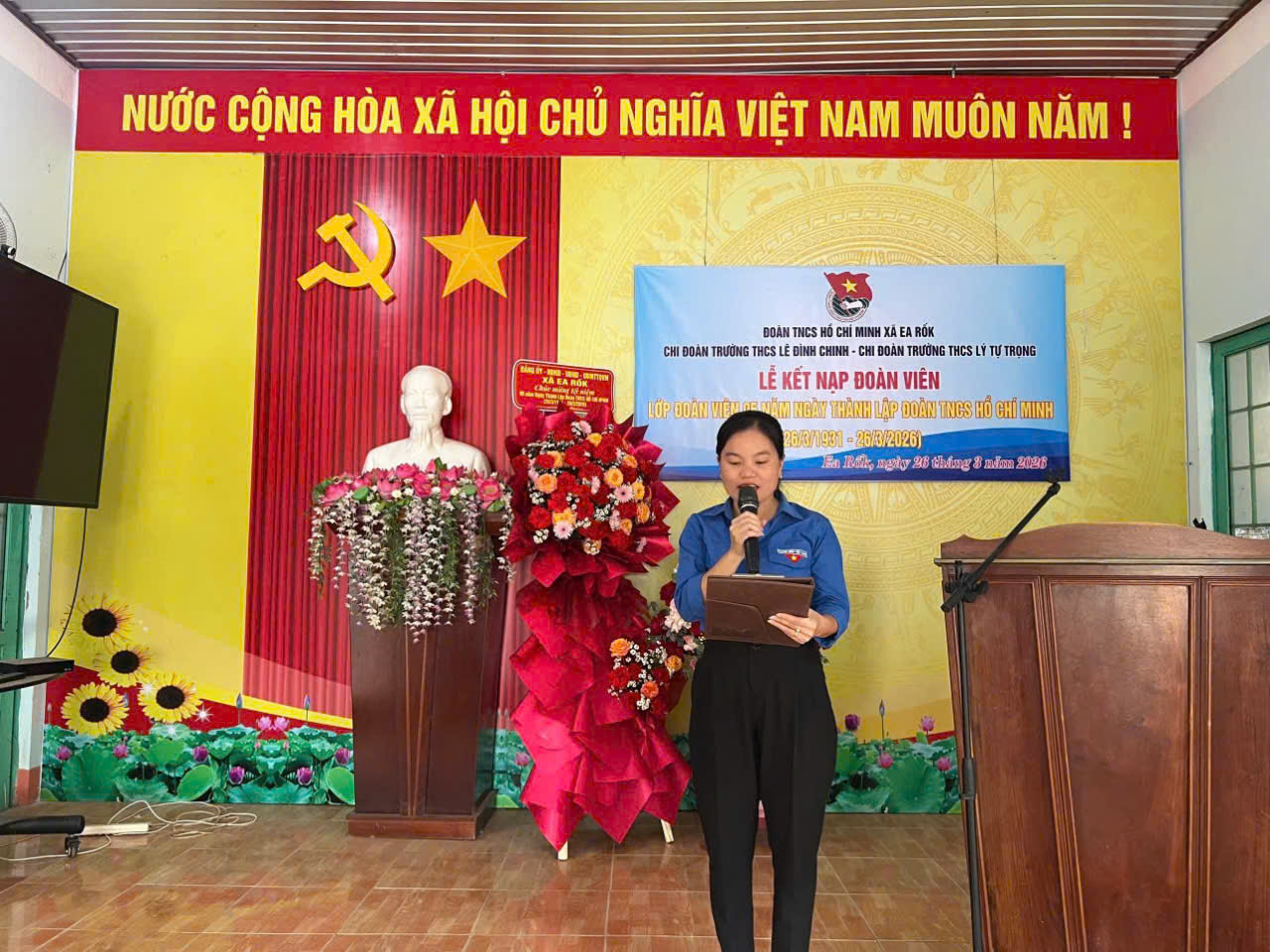 Chiều 26/03/2026, hòa chung không khí sục sôi, tự hào của tuổi trẻ cả nước hướng tới kỷ niệm 95 năm Ngày thành lập Đoàn TNCS Hồ Chí Minh (26/3/1931 – 26/3/2026), Chi đoàn trường THCS Lê Đình Chinh đã phối hợp cùng Đoàn xã Ea Rốk, chi đoàn Trường THCS Lý Tự Trọng long trọng tổ chức Lễ kết nạp Đoàn viên mới Đợt I năm 2026 ngay trong buổi Tọa đàm kỷ niệm vô cùng ý nghĩa. 🌺