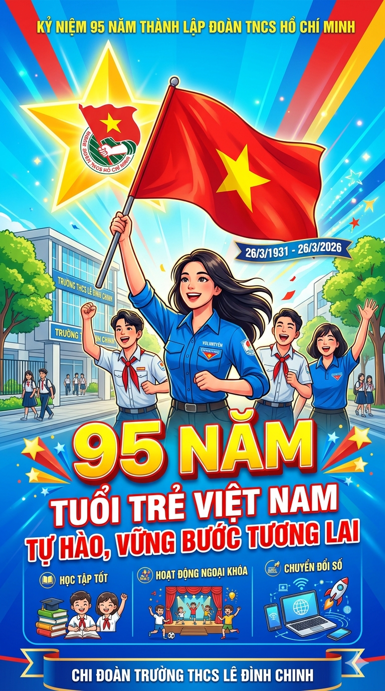 Nhân dịp kỷ niệm 95 năm ngày thành lập Đoàn Thanh niên Cộng sản Hồ Chí Minh (26/3/1931 – 26/3/2026), Trường THCS Lê Đình Chinh trân trọng giới thiệu Đề cương tuyên truyền 95 năm truyền thống vẻ vang của Đoàn. Đề cương giúp cán bộ, giáo viên và học sinh hiểu rõ hơn về quá trình hình thành, phát triển, những dấu mốc quan trọng cũng như những đóng góp to lớn của tổ chức Đoàn trong sự nghiệp xây dựng và bảo vệ Tổ quốc. Đây cũng là dịp để giáo dục thế hệ trẻ tiếp tục phát huy tinh thần xung kích, trách nhiệm, góp phần xây dựng quê hương ngày càng phát triển./.