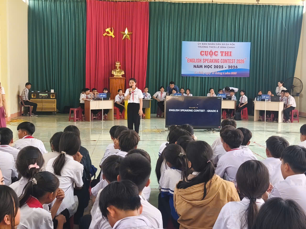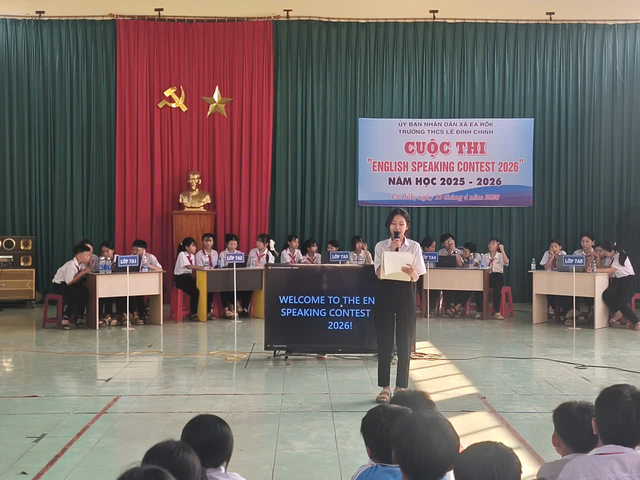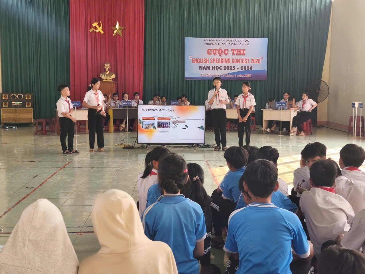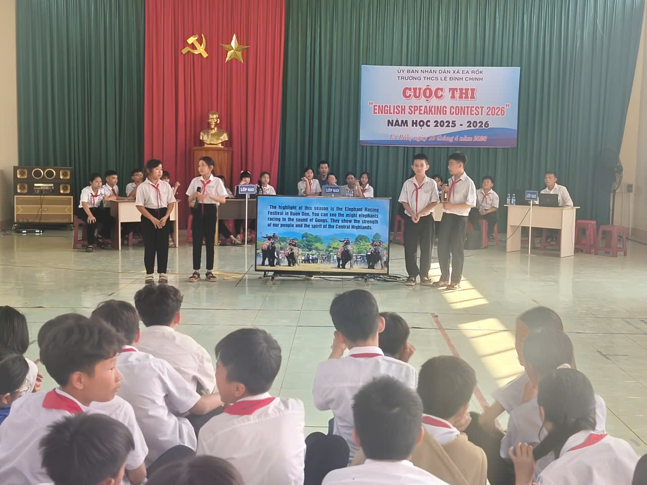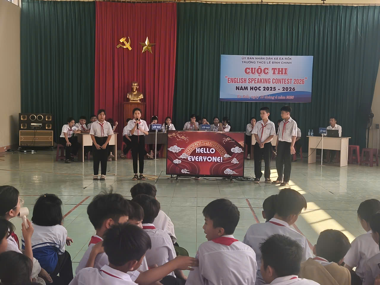 Thực hiện kế hoạch giáo dục năm học 2025–2026, Trường THCS Lê Đình Chinh, xã Ea Rốk, tỉnh Đắk Lắk đã tổ chức thành công cuộc thi “English Speaking Contest 2026” vào chiều ngày 10/4/2026 và sáng ngày 11/4/2026 tại phòng đa năng của nhà trường.