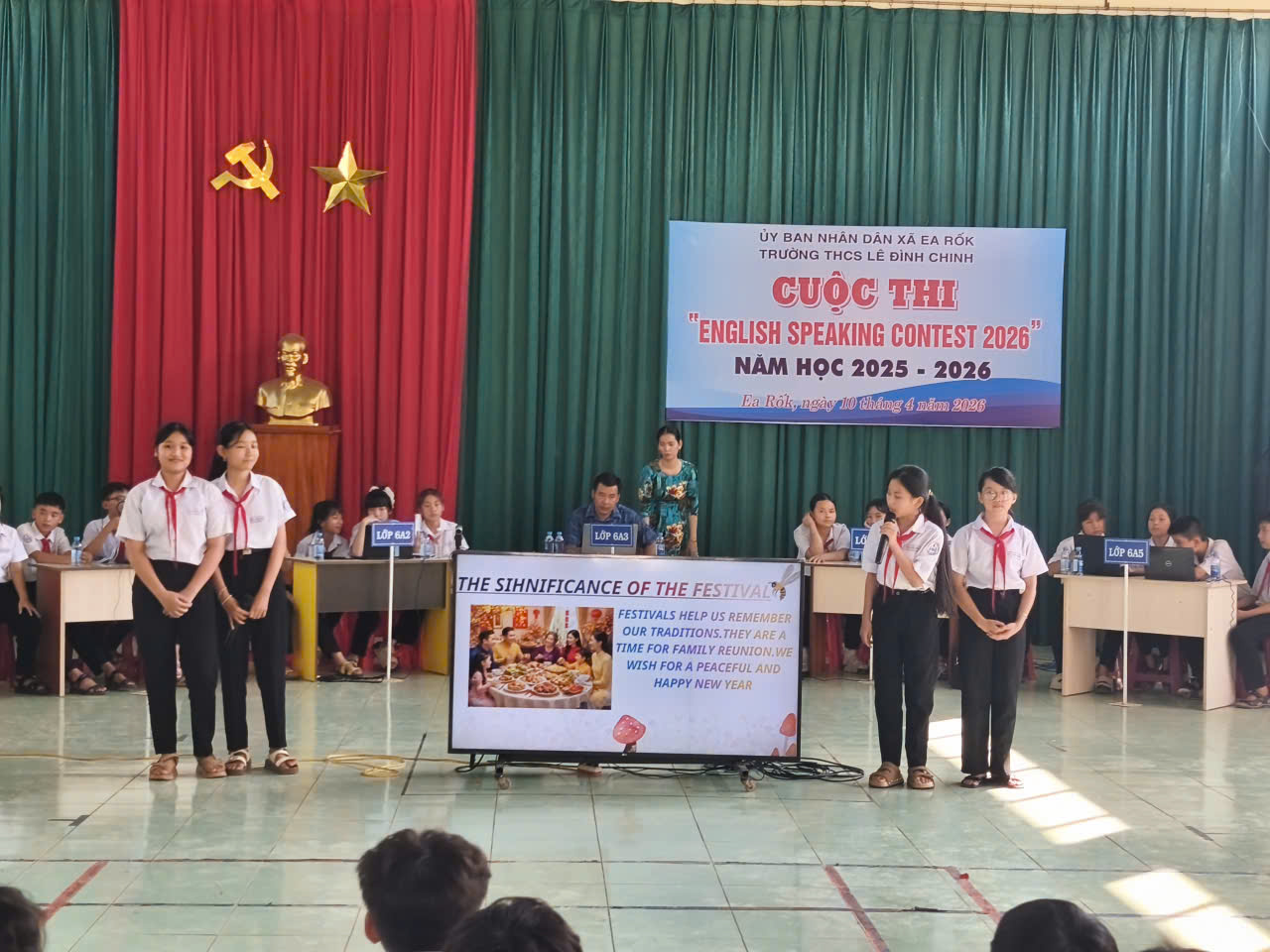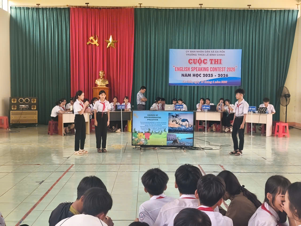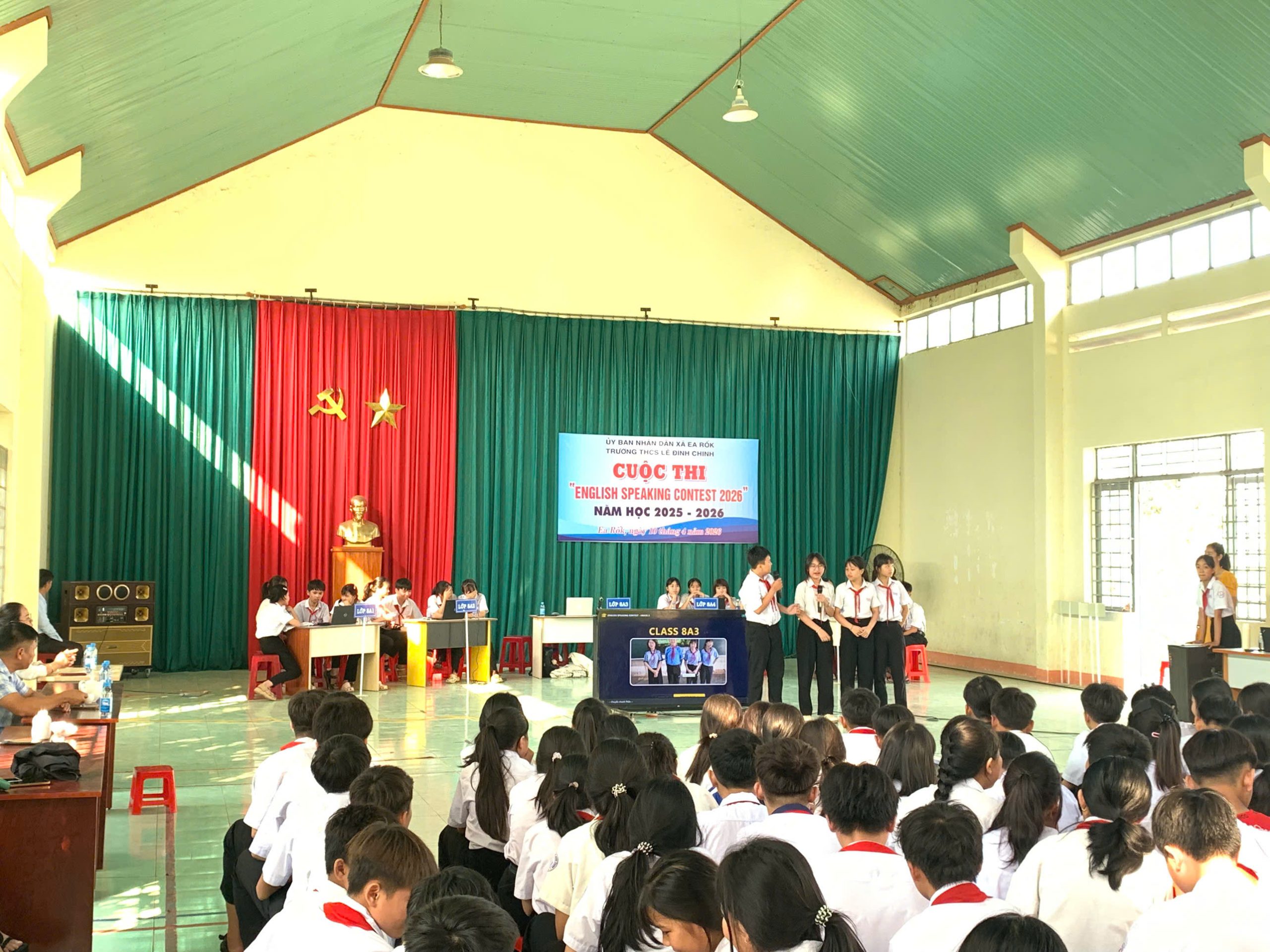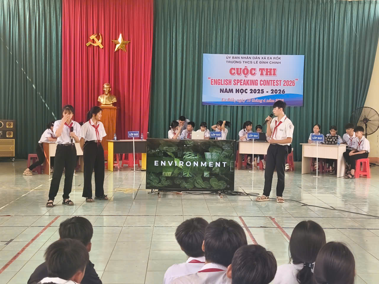 Thực hiện kế hoạch giáo dục năm học 2025–2026, Trường THCS Lê Đình Chinh, xã Ea Rốk, tỉnh Đắk Lắk đã tổ chức thành công cuộc thi “English Speaking Contest 2026” vào chiều ngày 10/4/2026 và sáng ngày 11/4/2026 tại phòng đa năng của nhà trường.