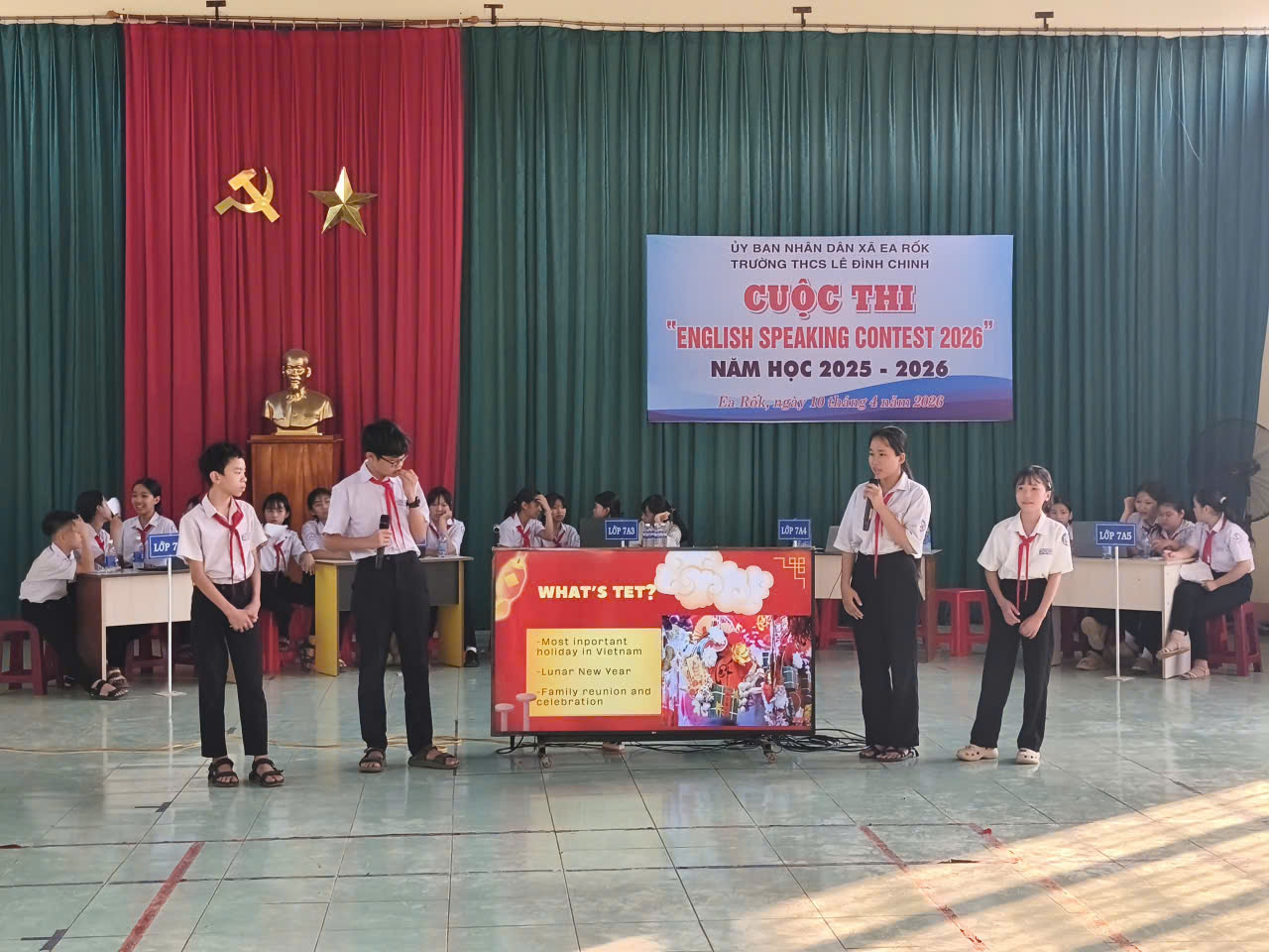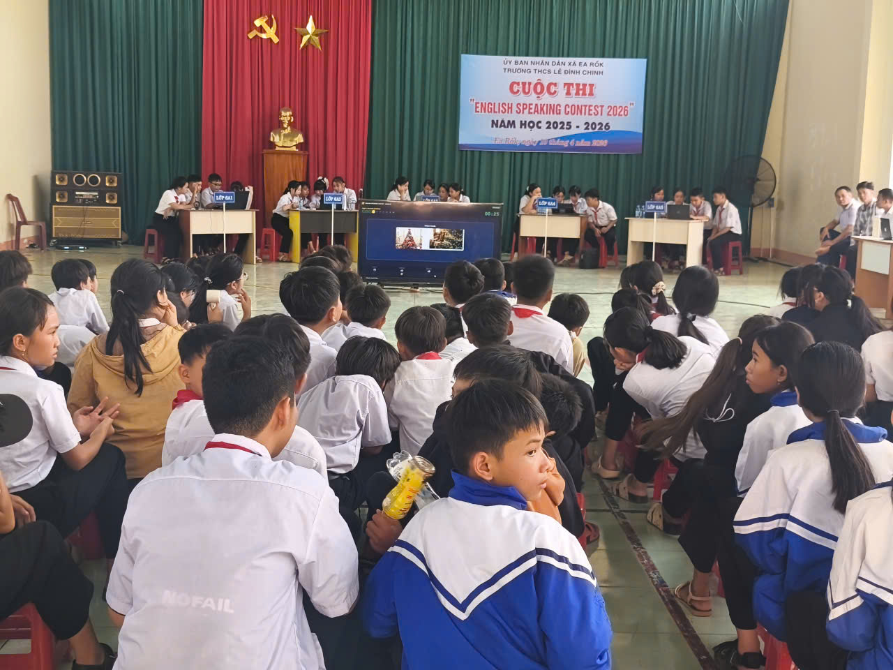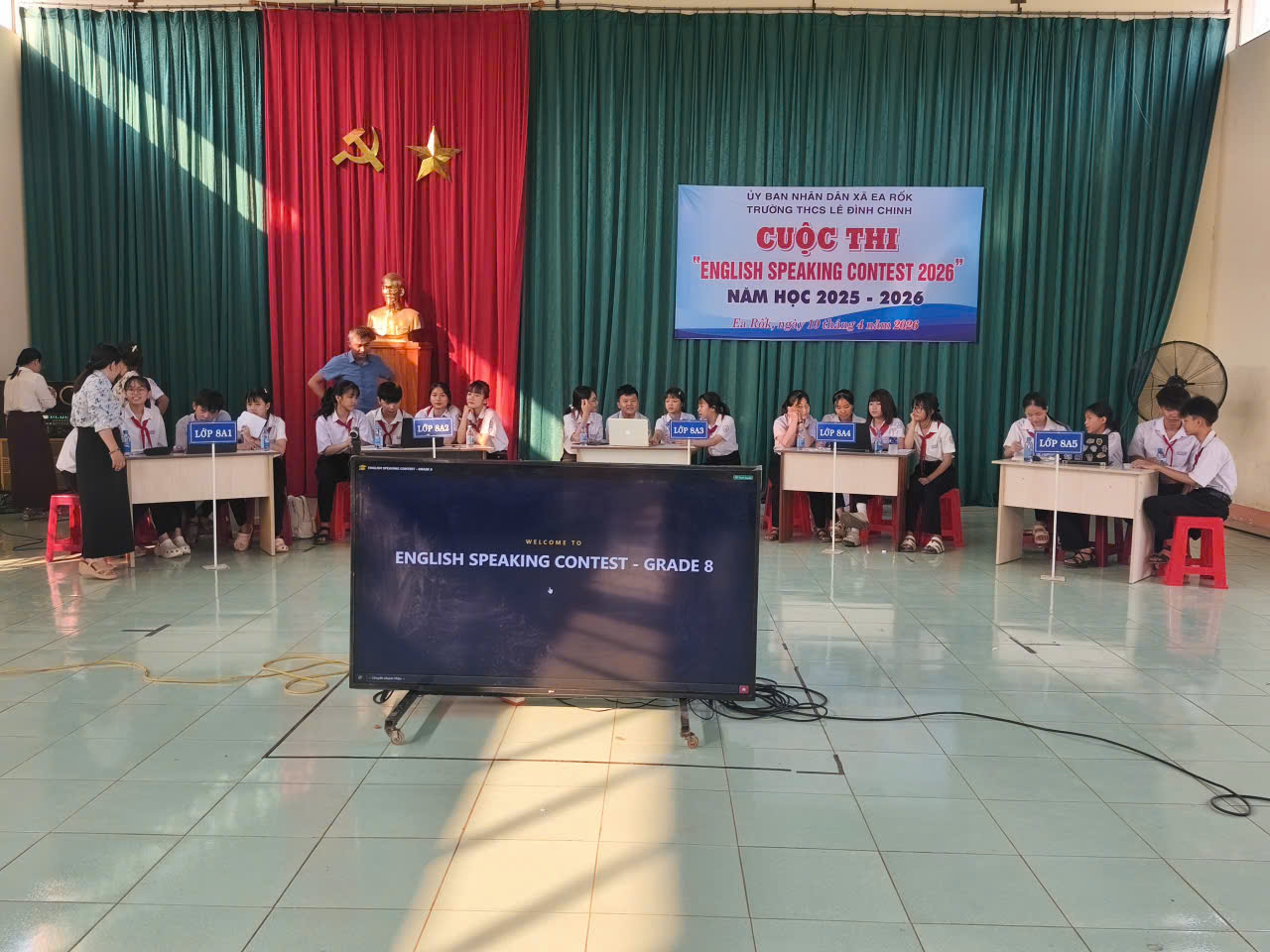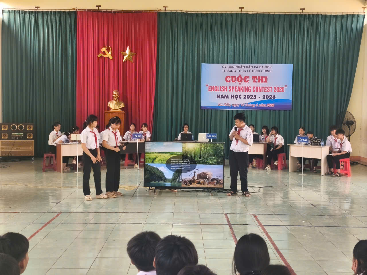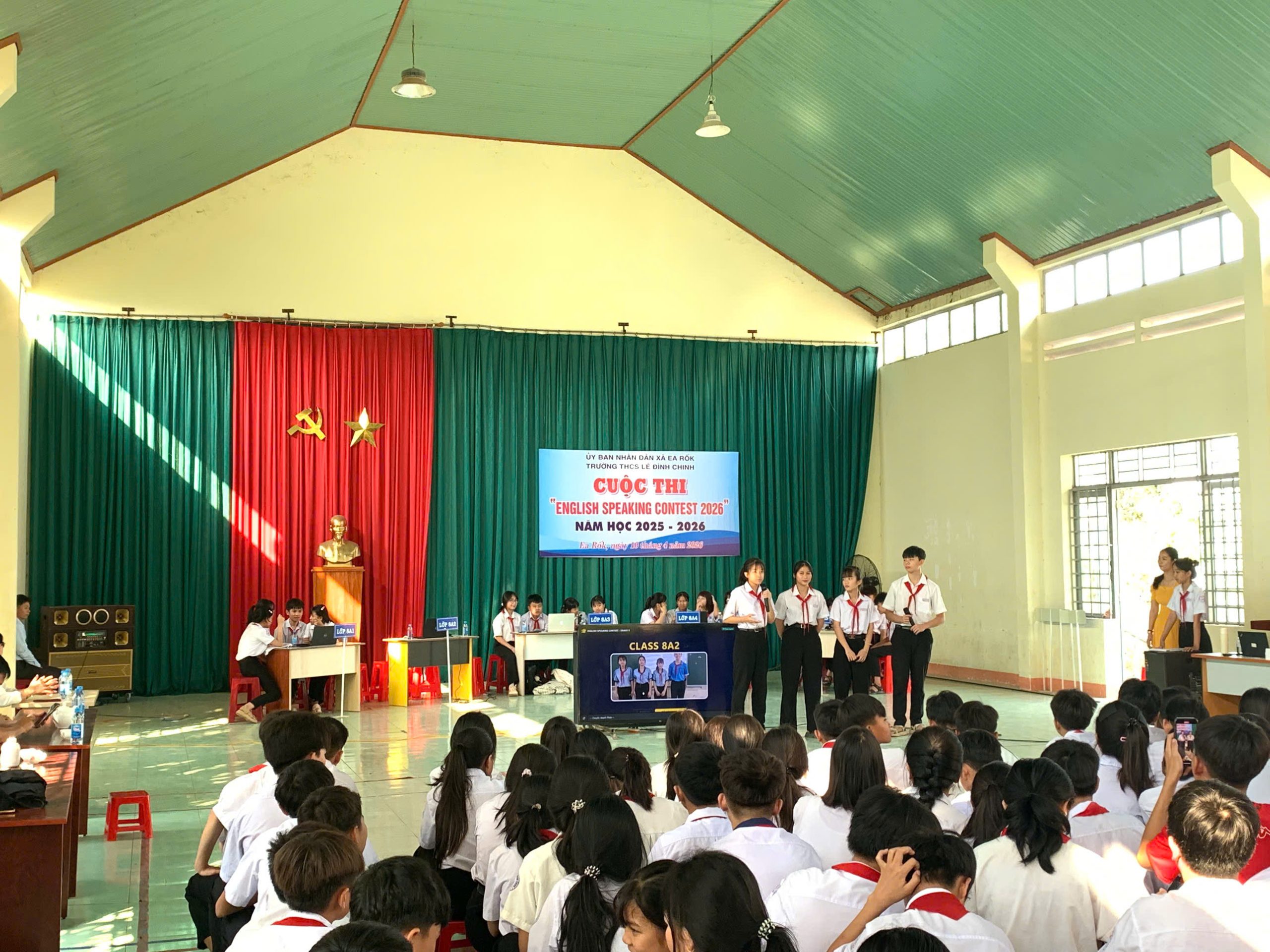 Thực hiện kế hoạch giáo dục năm học 2025–2026, Trường THCS Lê Đình Chinh, xã Ea Rốk, tỉnh Đắk Lắk đã tổ chức thành công cuộc thi “English Speaking Contest 2026” vào chiều ngày 10/4/2026 và sáng ngày 11/4/2026 tại phòng đa năng của nhà trường.
