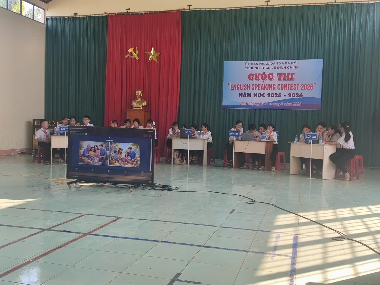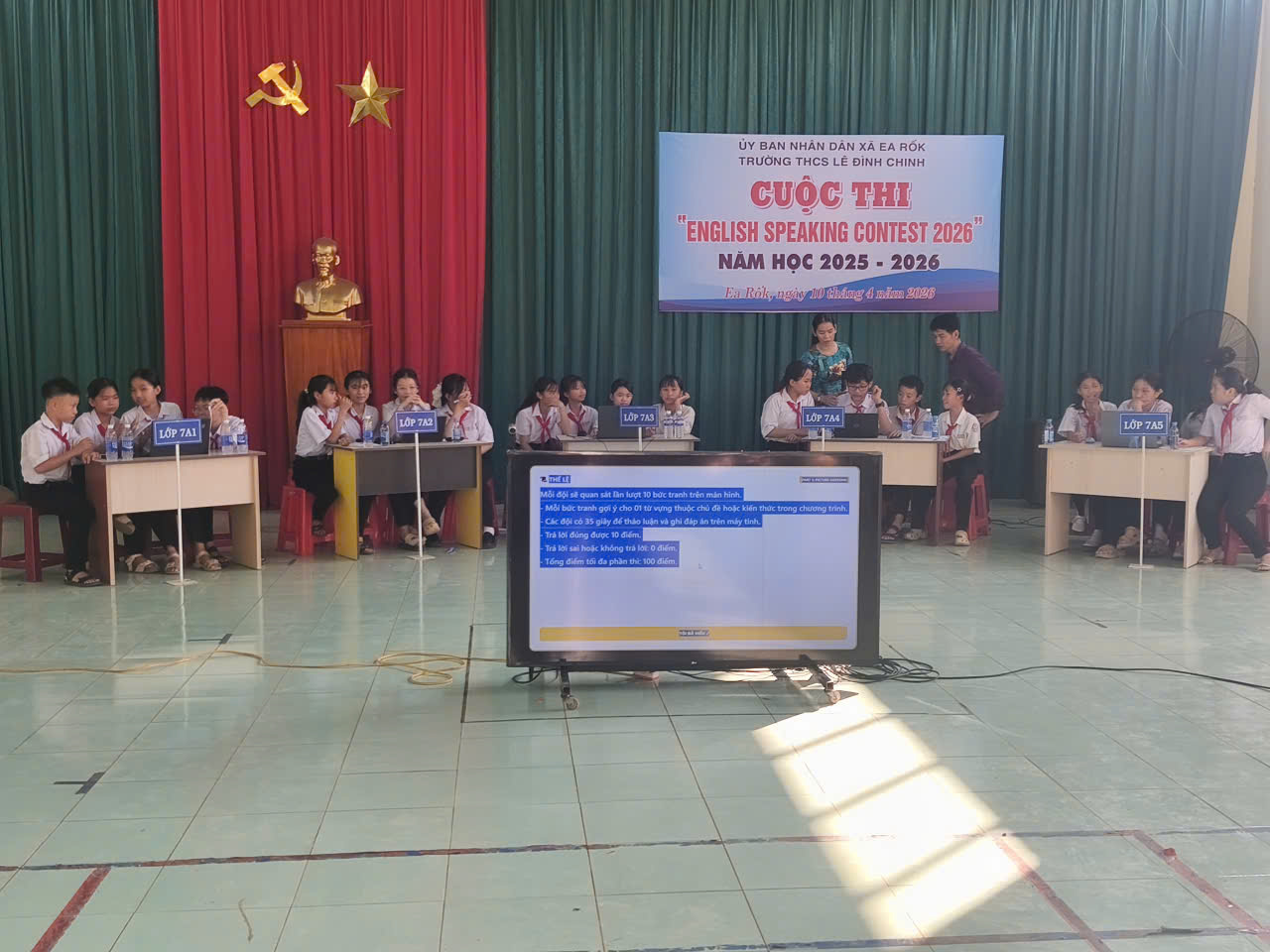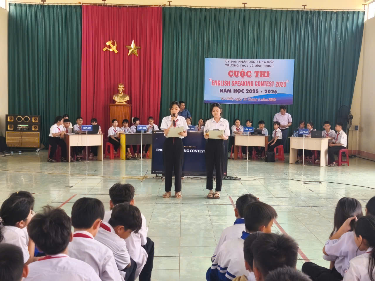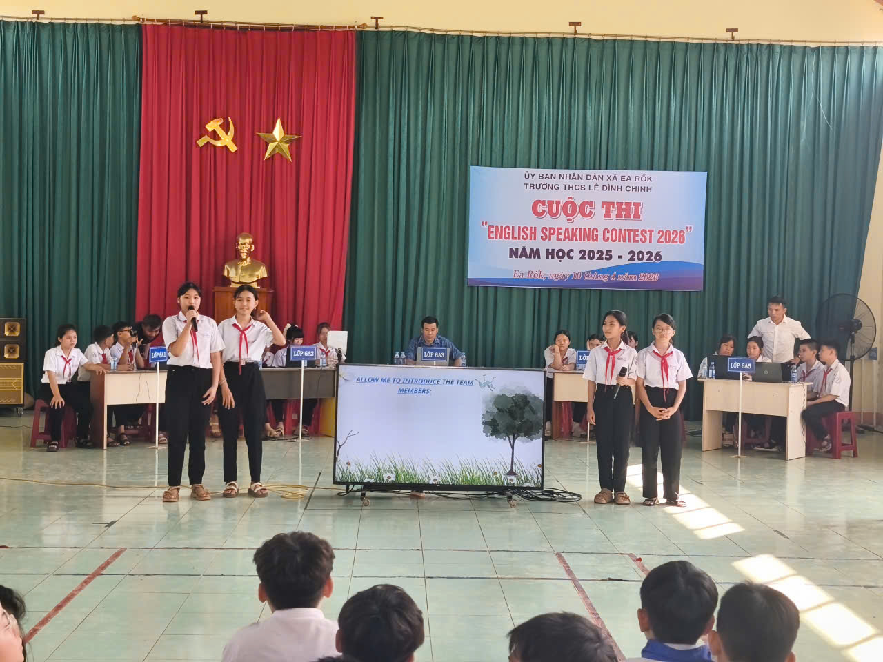 Thực hiện kế hoạch giáo dục năm học 2025–2026, Trường THCS Lê Đình Chinh, xã Ea Rốk, tỉnh Đắk Lắk đã tổ chức thành công cuộc thi “English Speaking Contest 2026” vào chiều ngày 10/4/2026 và sáng ngày 11/4/2026 tại phòng đa năng của nhà trường.