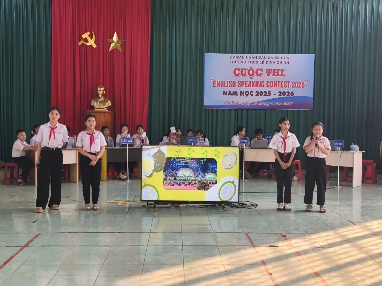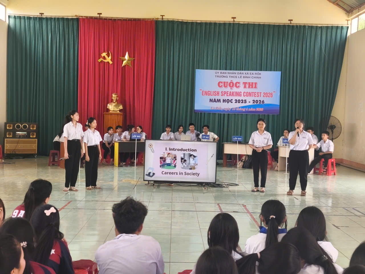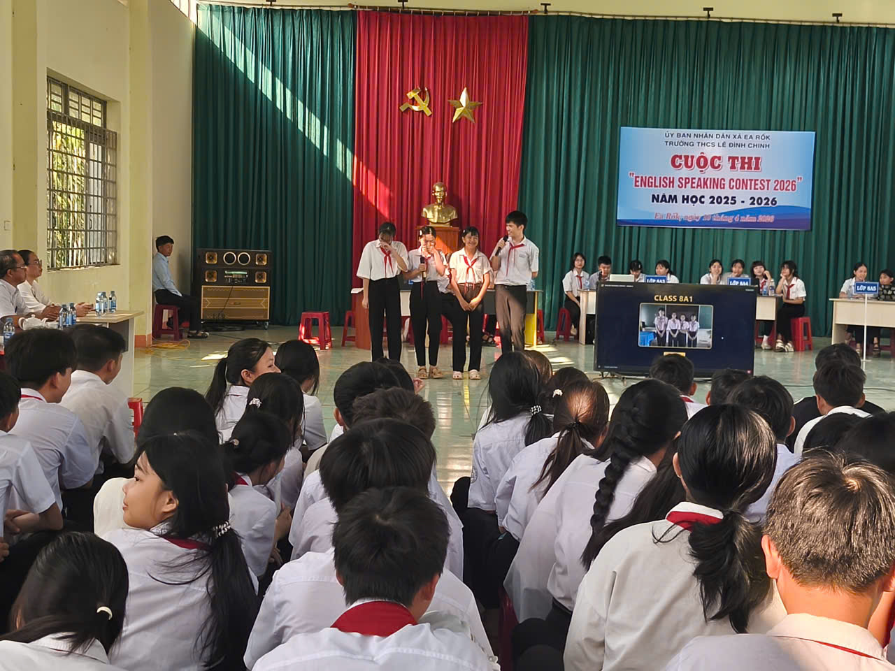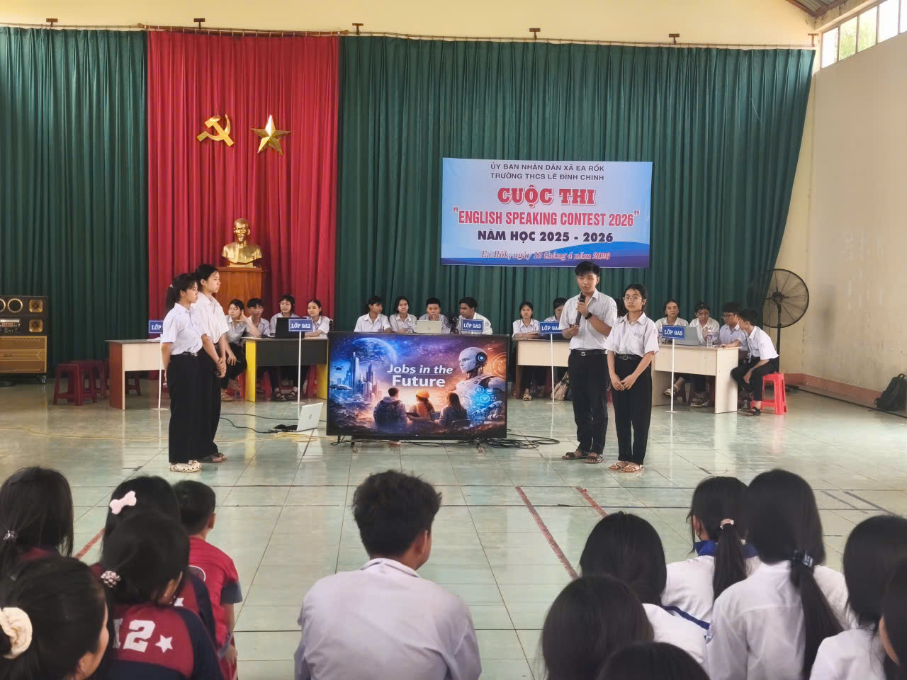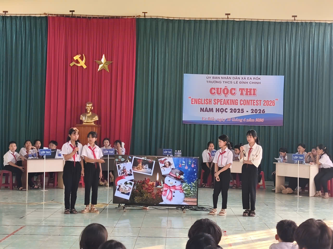 Thực hiện kế hoạch giáo dục năm học 2025–2026, Trường THCS Lê Đình Chinh, xã Ea Rốk, tỉnh Đắk Lắk đã tổ chức thành công cuộc thi “English Speaking Contest 2026” vào chiều ngày 10/4/2026 và sáng ngày 11/4/2026 tại phòng đa năng của nhà trường.
