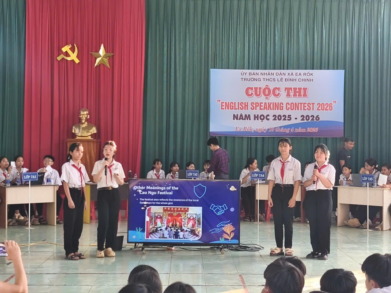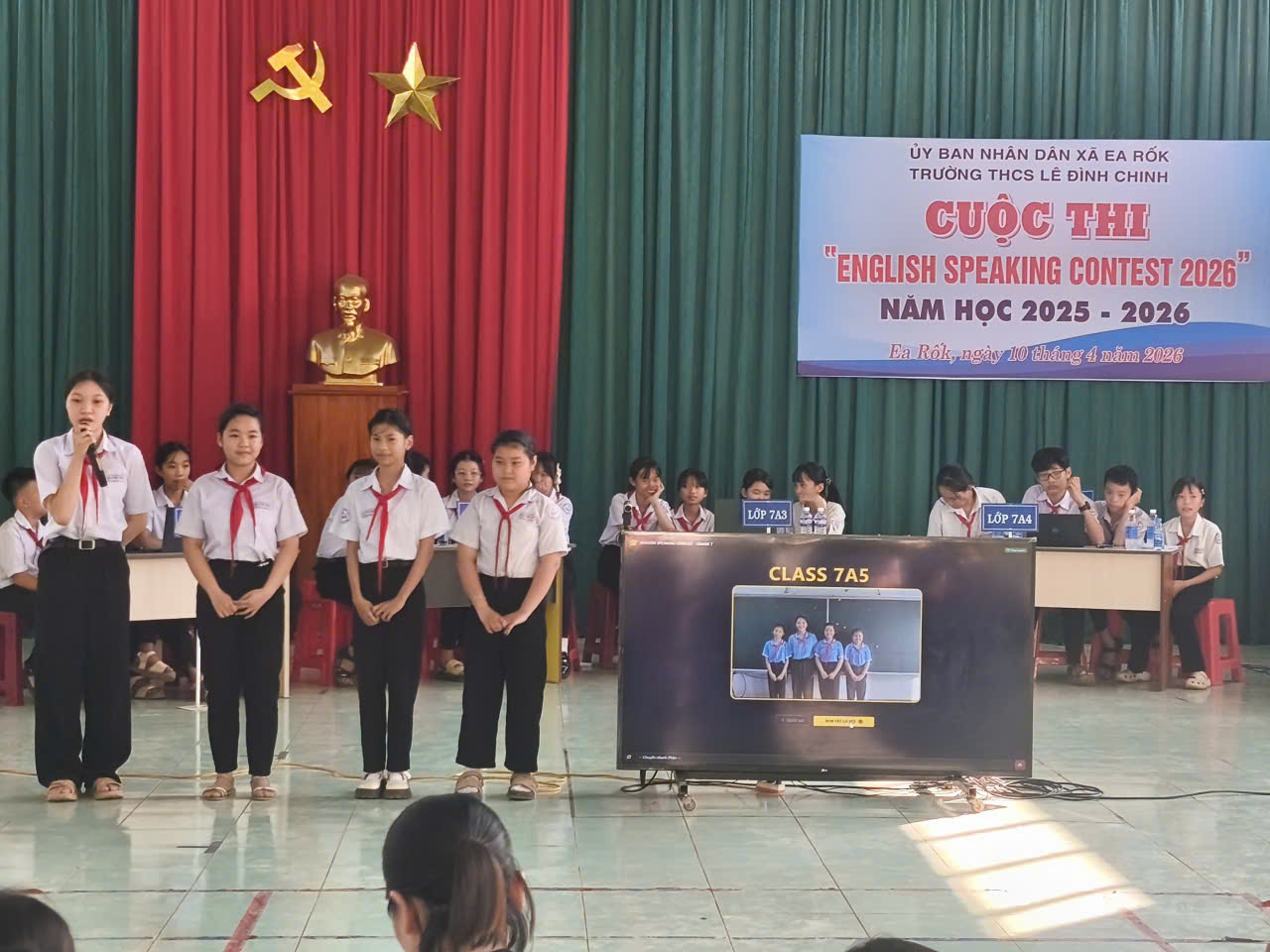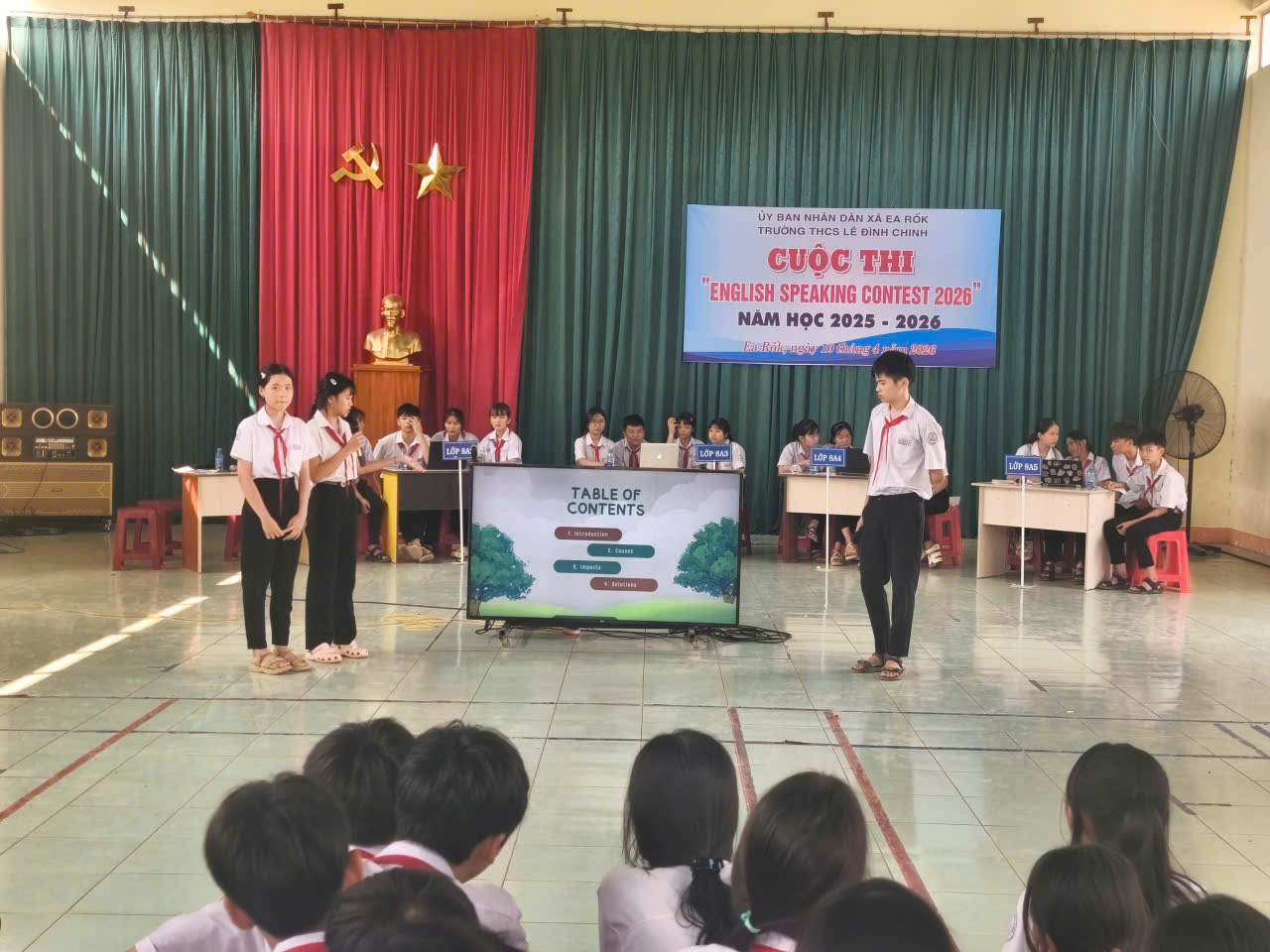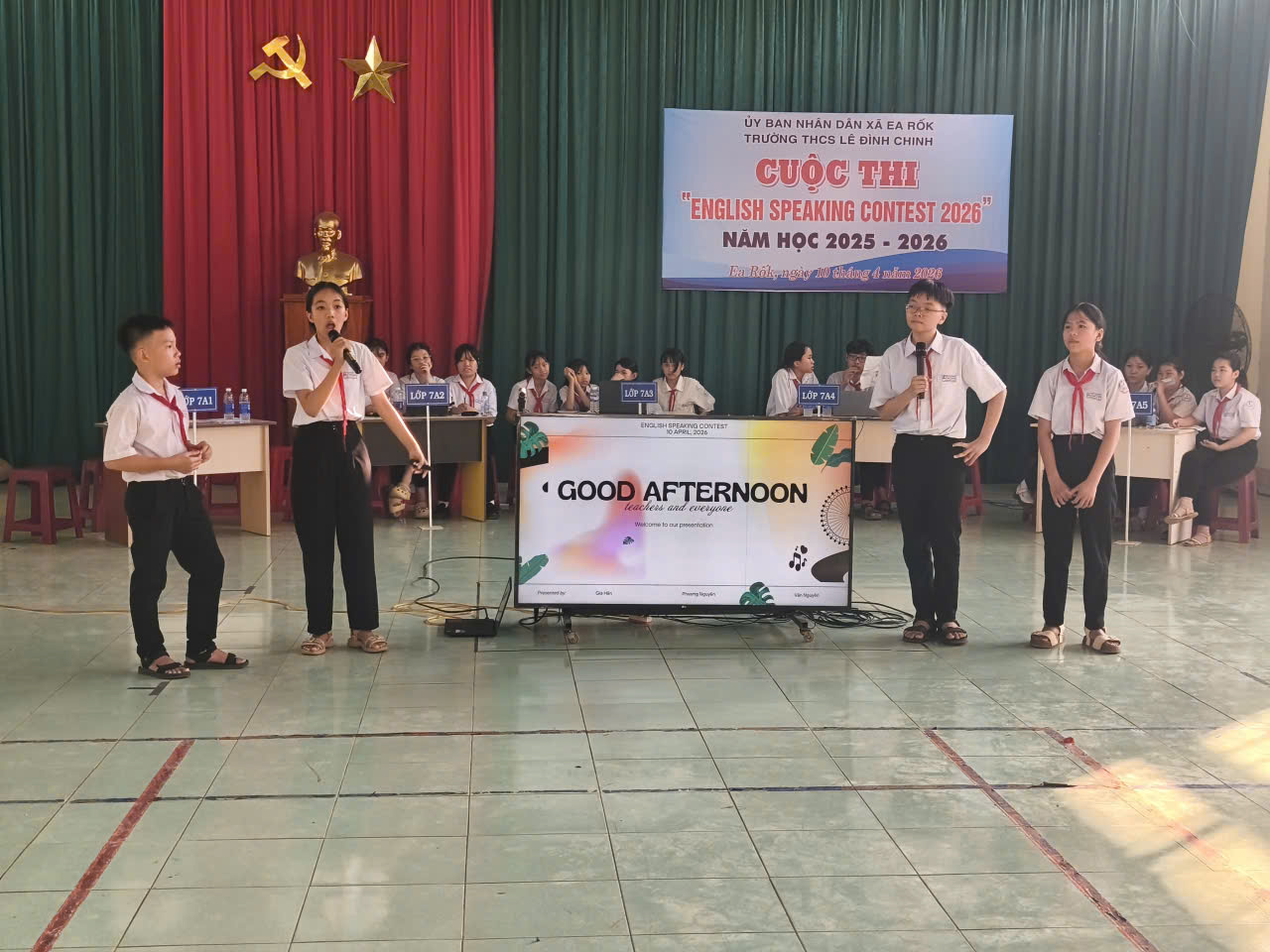 Thực hiện kế hoạch giáo dục năm học 2025–2026, Trường THCS Lê Đình Chinh, xã Ea Rốk, tỉnh Đắk Lắk đã tổ chức thành công cuộc thi “English Speaking Contest 2026” vào chiều ngày 10/4/2026 và sáng ngày 11/4/2026 tại phòng đa năng của nhà trường.