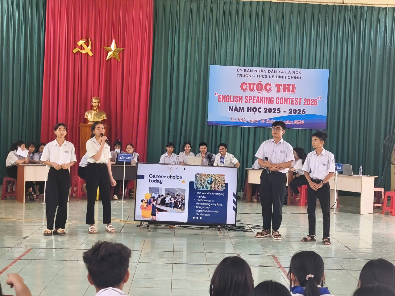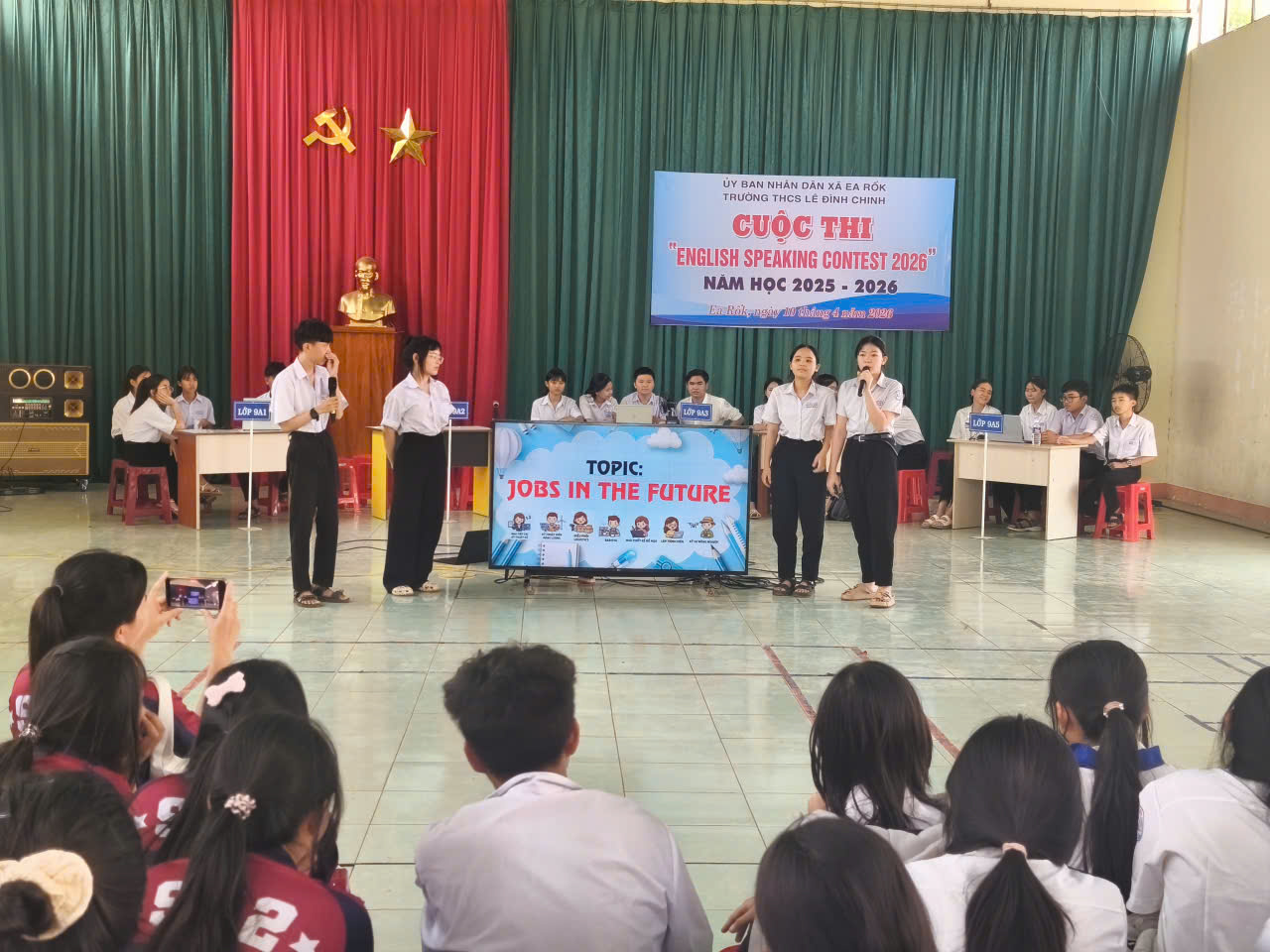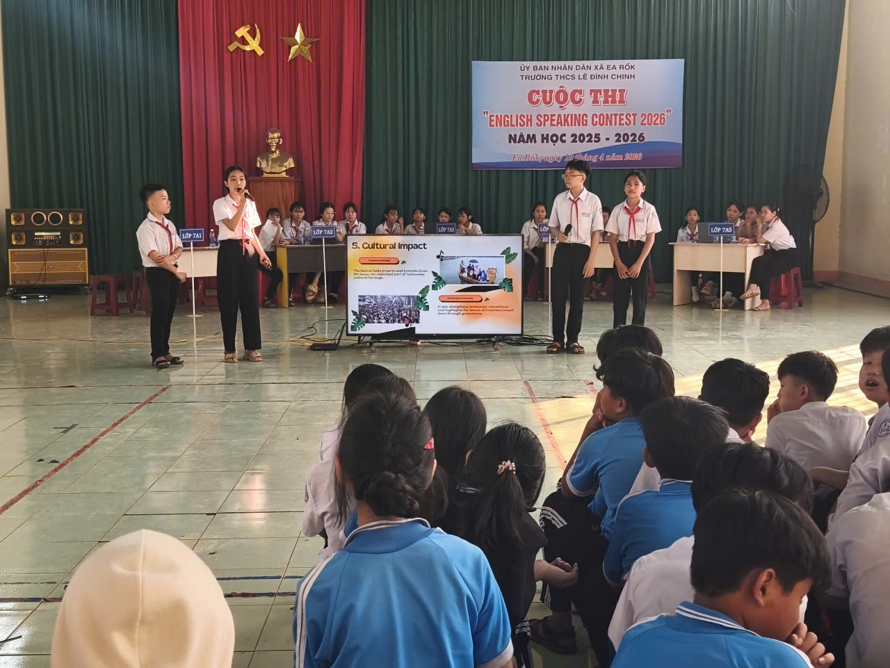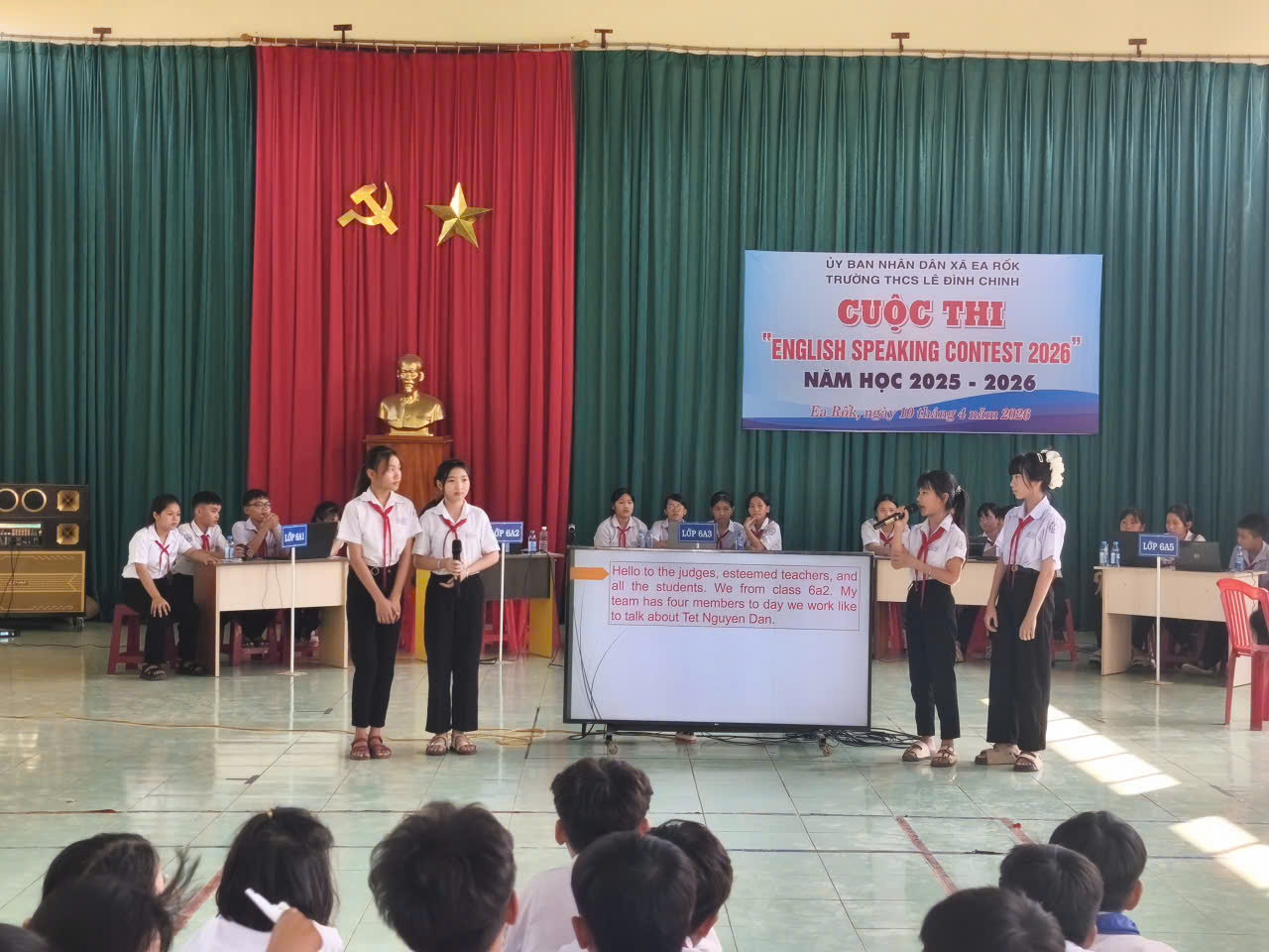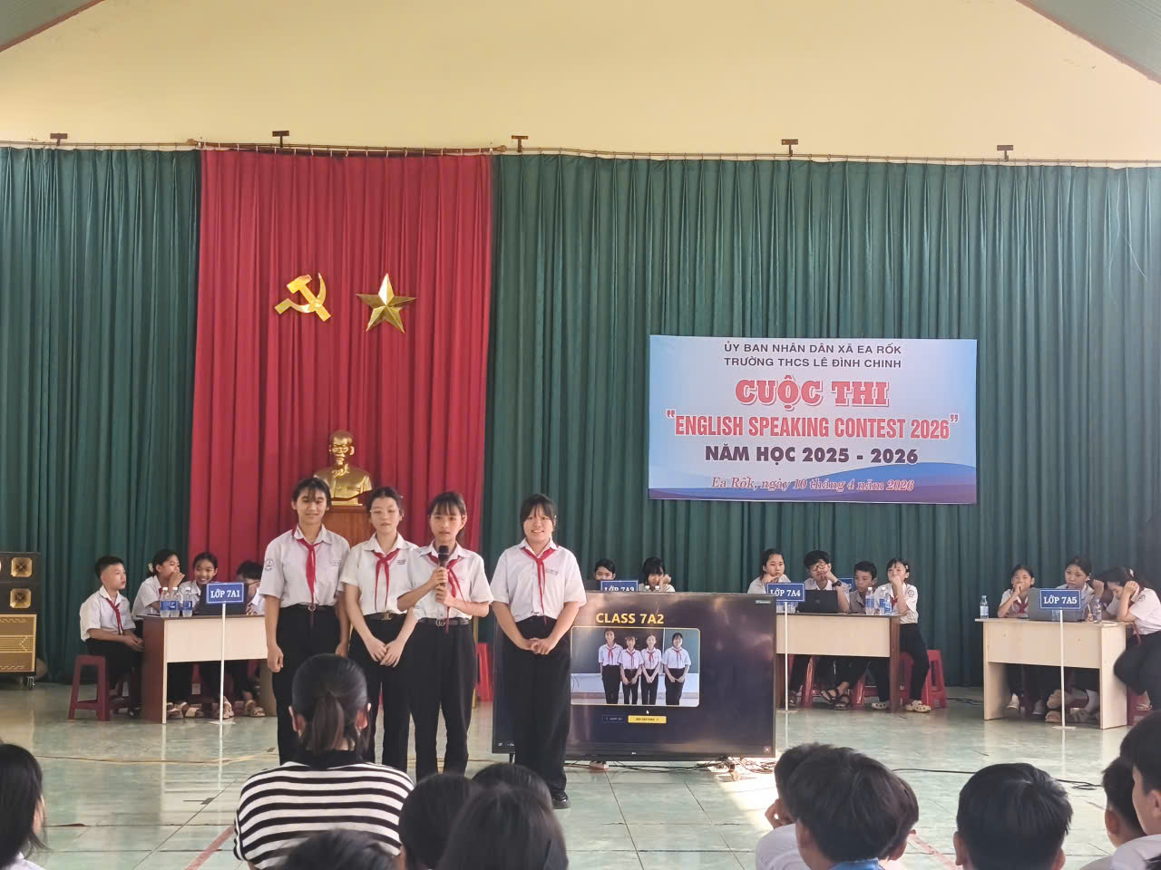 Thực hiện kế hoạch giáo dục năm học 2025–2026, Trường THCS Lê Đình Chinh, xã Ea Rốk, tỉnh Đắk Lắk đã tổ chức thành công cuộc thi “English Speaking Contest 2026” vào chiều ngày 10/4/2026 và sáng ngày 11/4/2026 tại phòng đa năng của nhà trường.