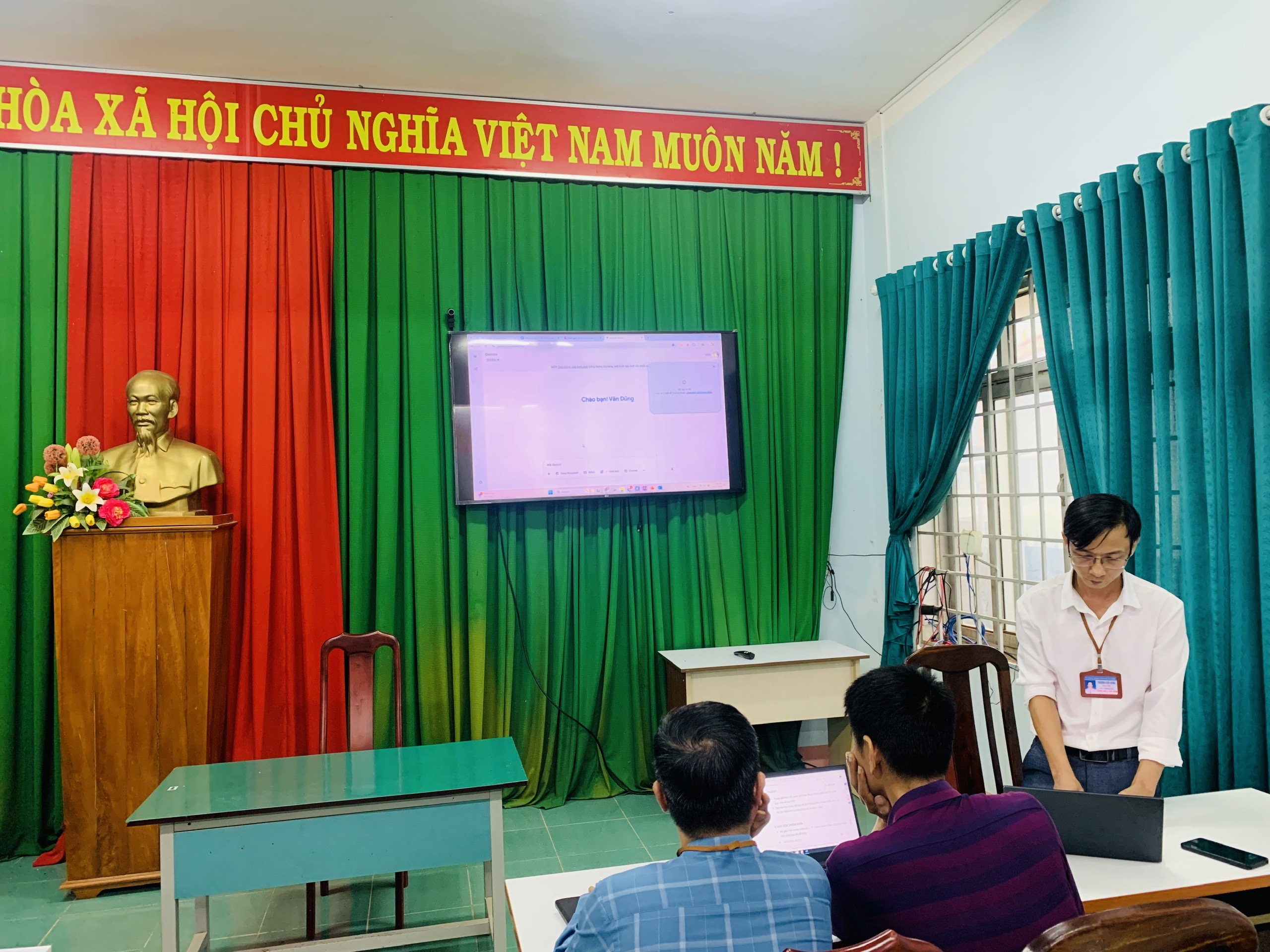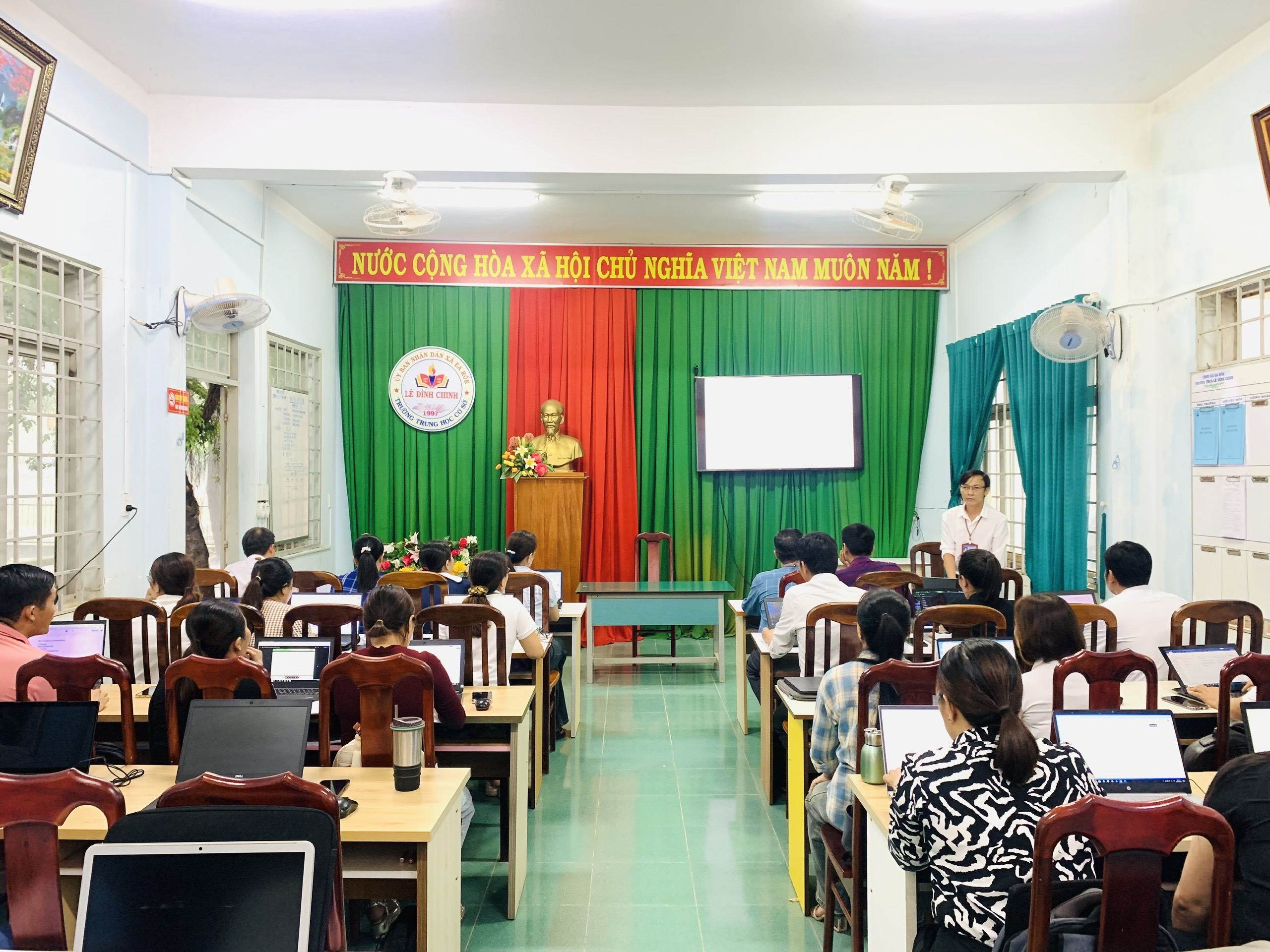 Thực hiện Công văn số 349/SGDĐT-GDPT ngày 08/8/2025 của Sở Giáo dục và Đào tạo tỉnh Đắk Lắk về việc bồi dưỡng nâng cao năng lực ứng dụng trí tuệ nhân tạo (AI) cho cán bộ quản lý và giáo viên. Trường THCS Lê Đình Chinh đã xây dựng kế hoạch và tổ chức tập huấn chuyên đề nội bộ trong tháng 9/2025.