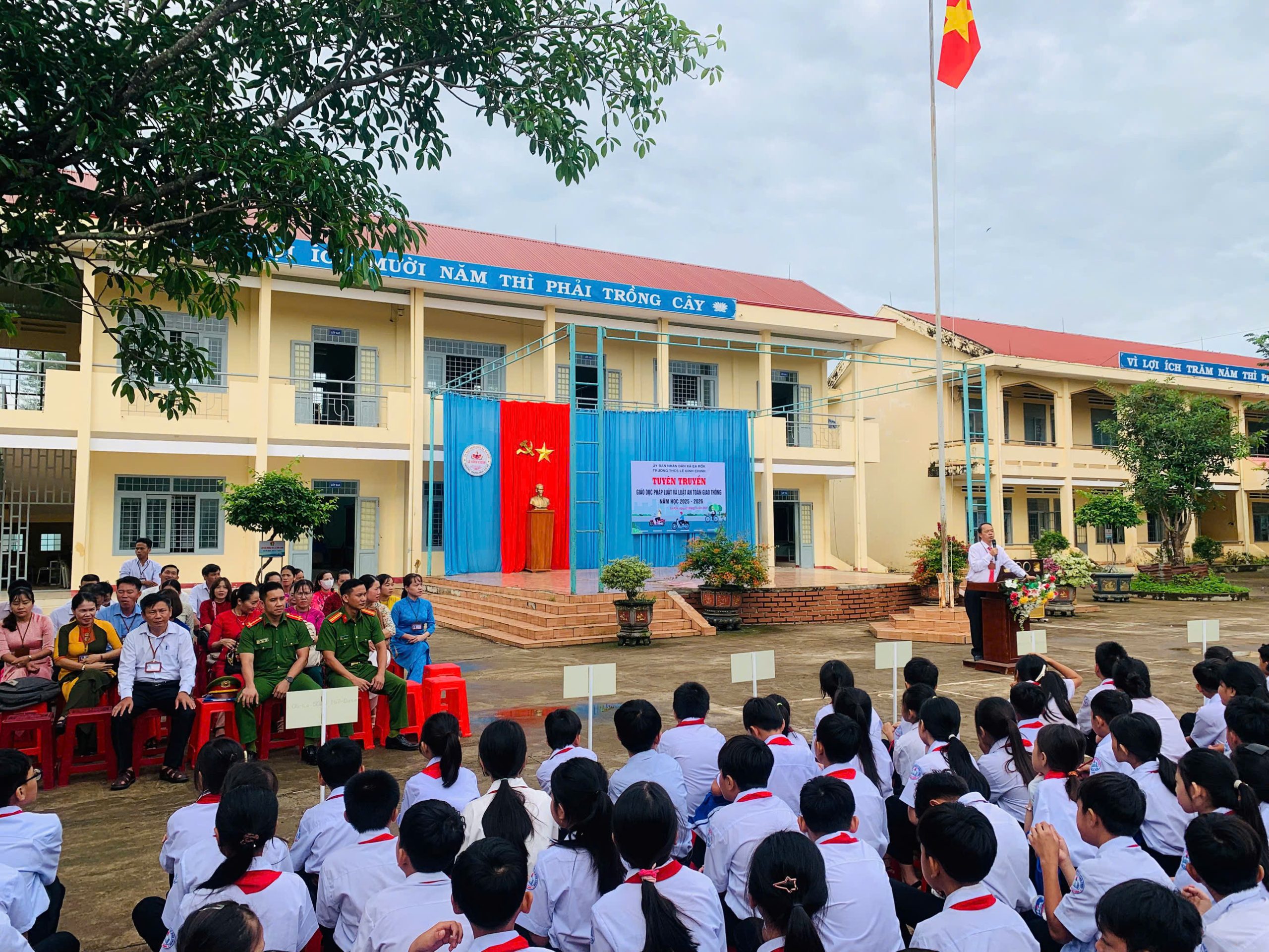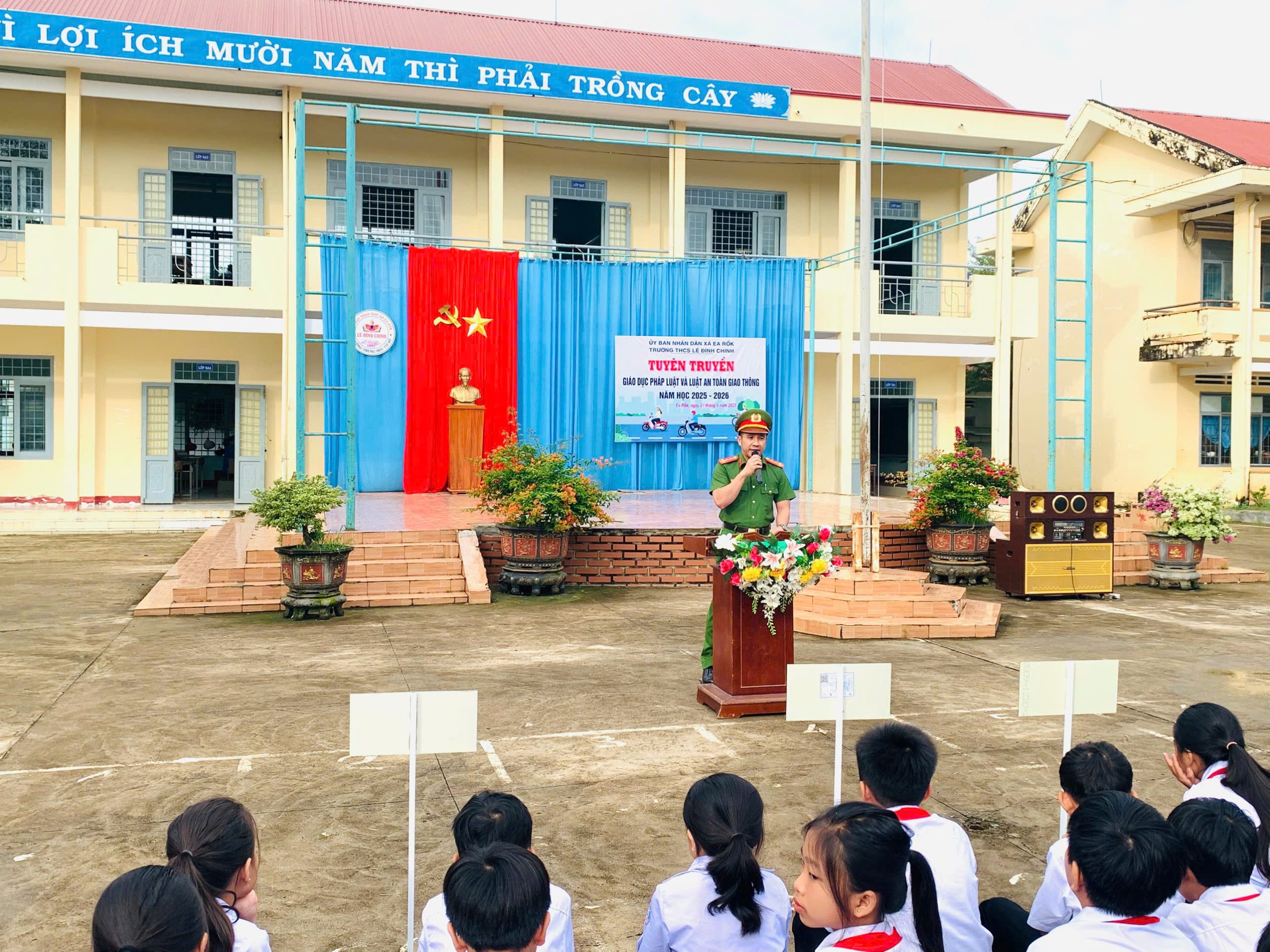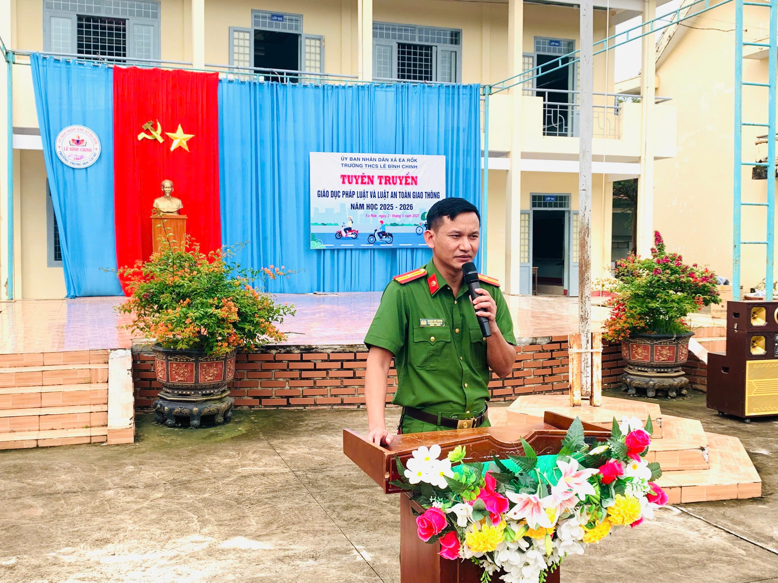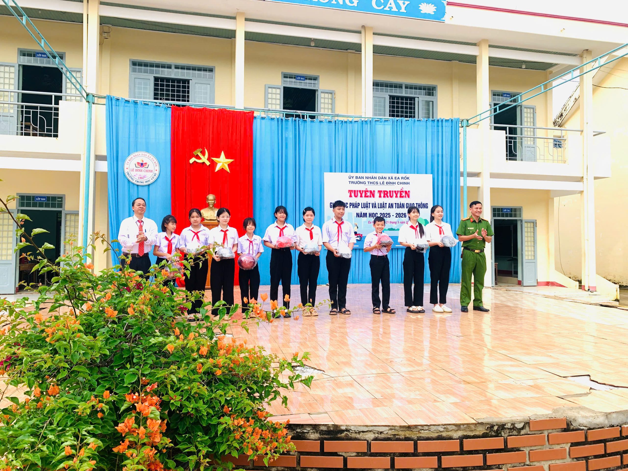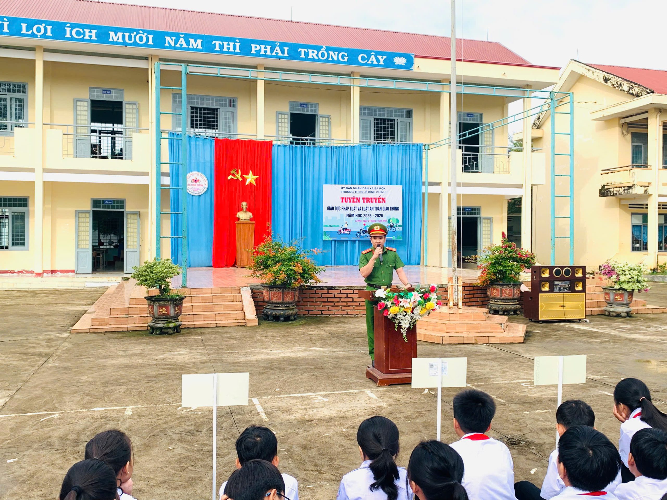 Sáng ngày 29/9/2025, Trường THCS Lê Đình Chinh (xã Ea Rốk, tỉnh Đắk Lắk) đã tổ chức hoạt động tuyên truyền, giáo dục pháp luật và Luật An toàn giao thông trong năm học 2025 – 2026.