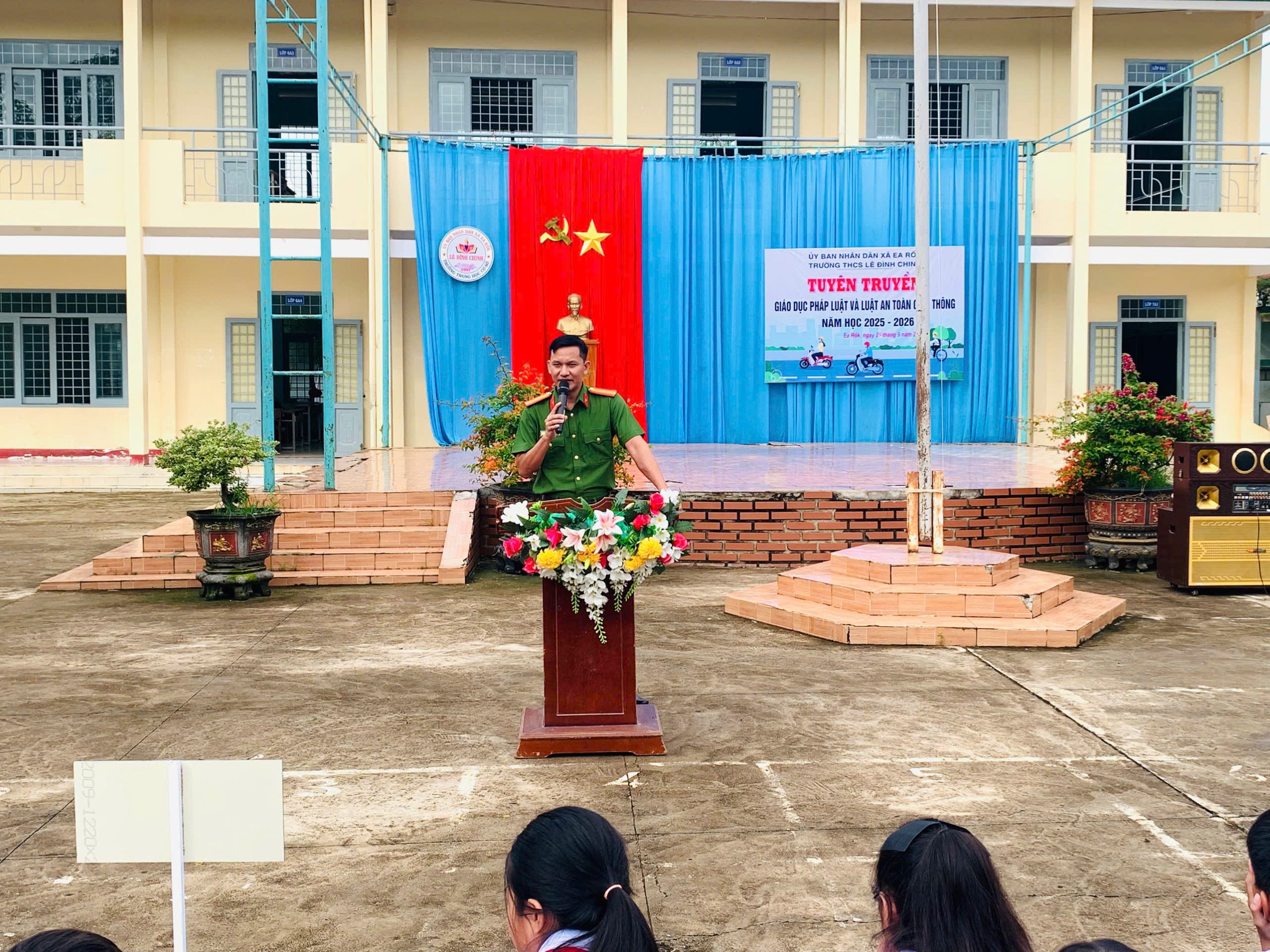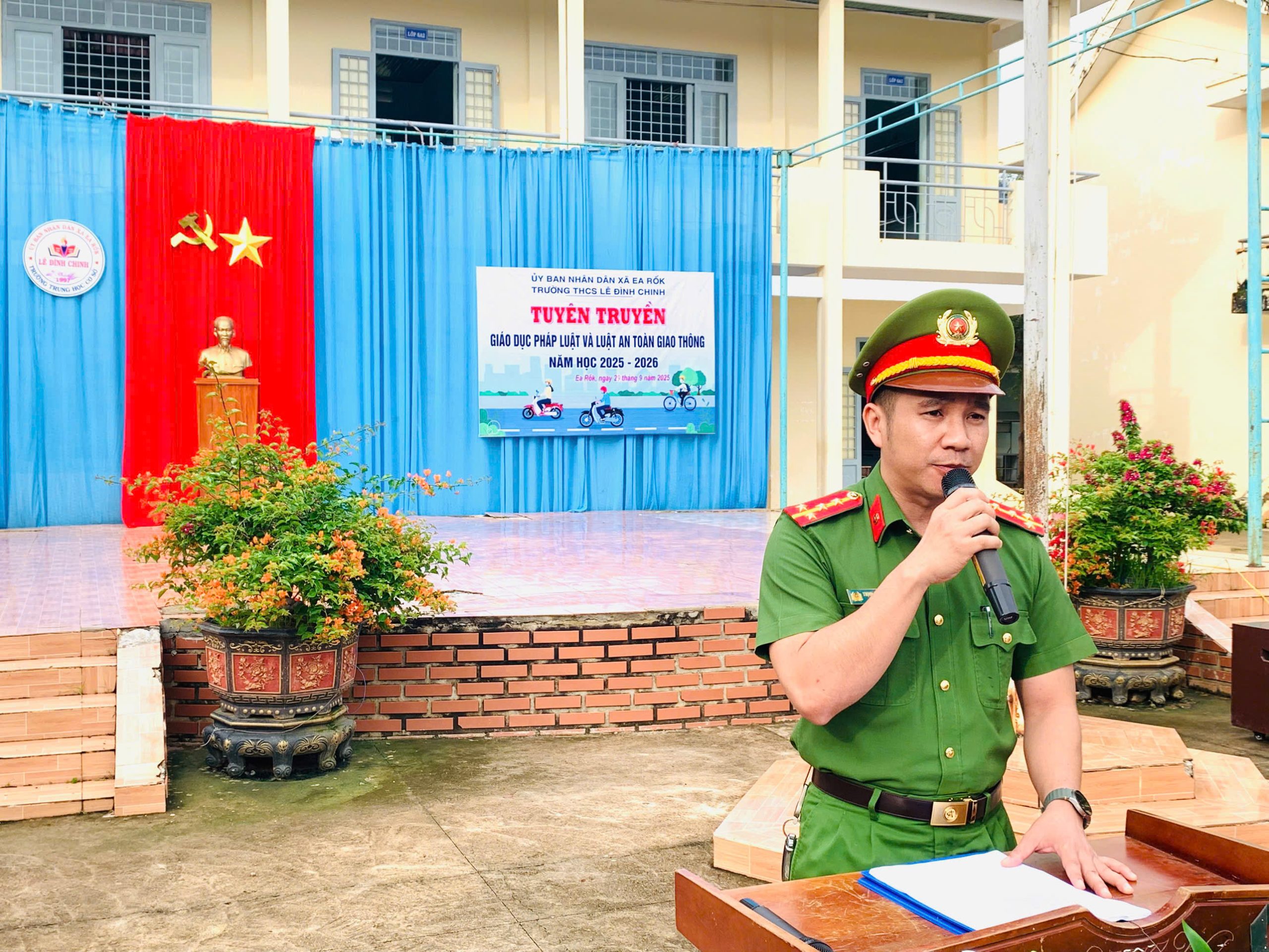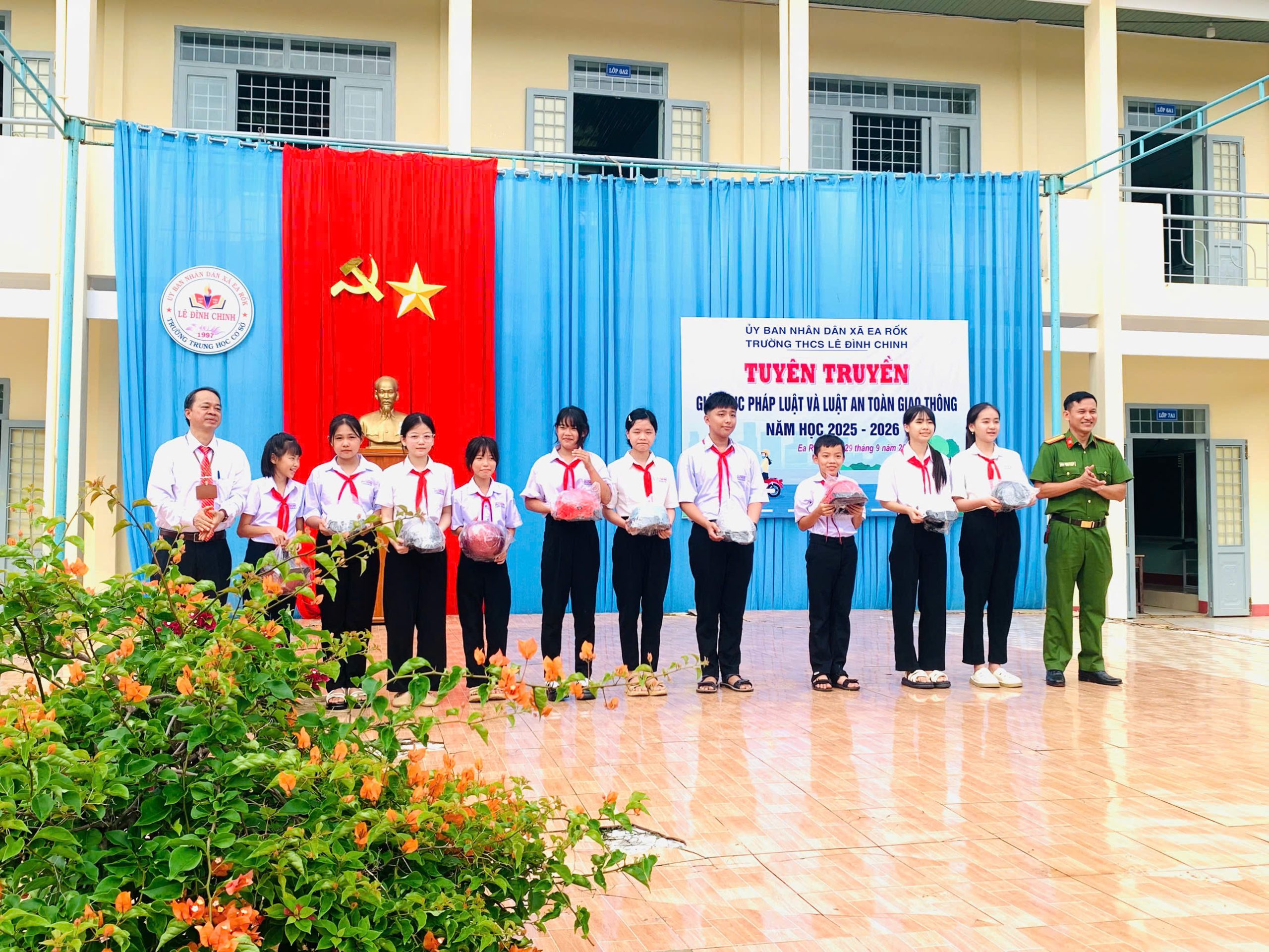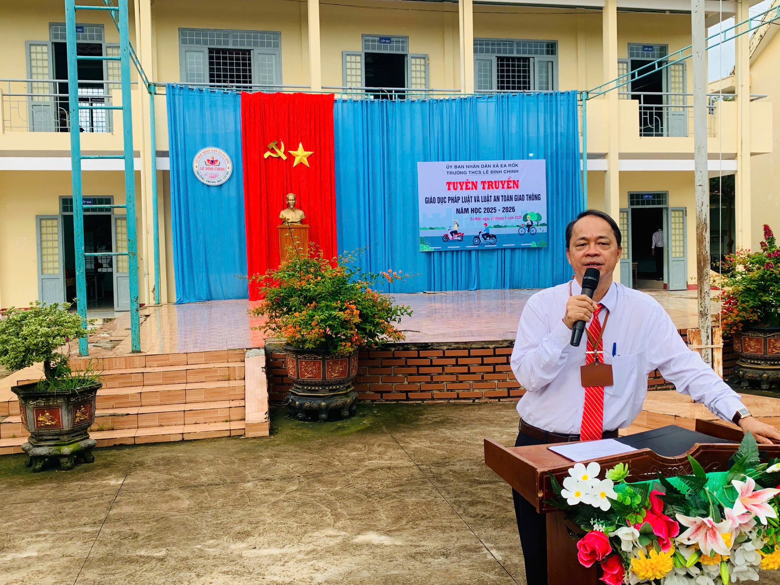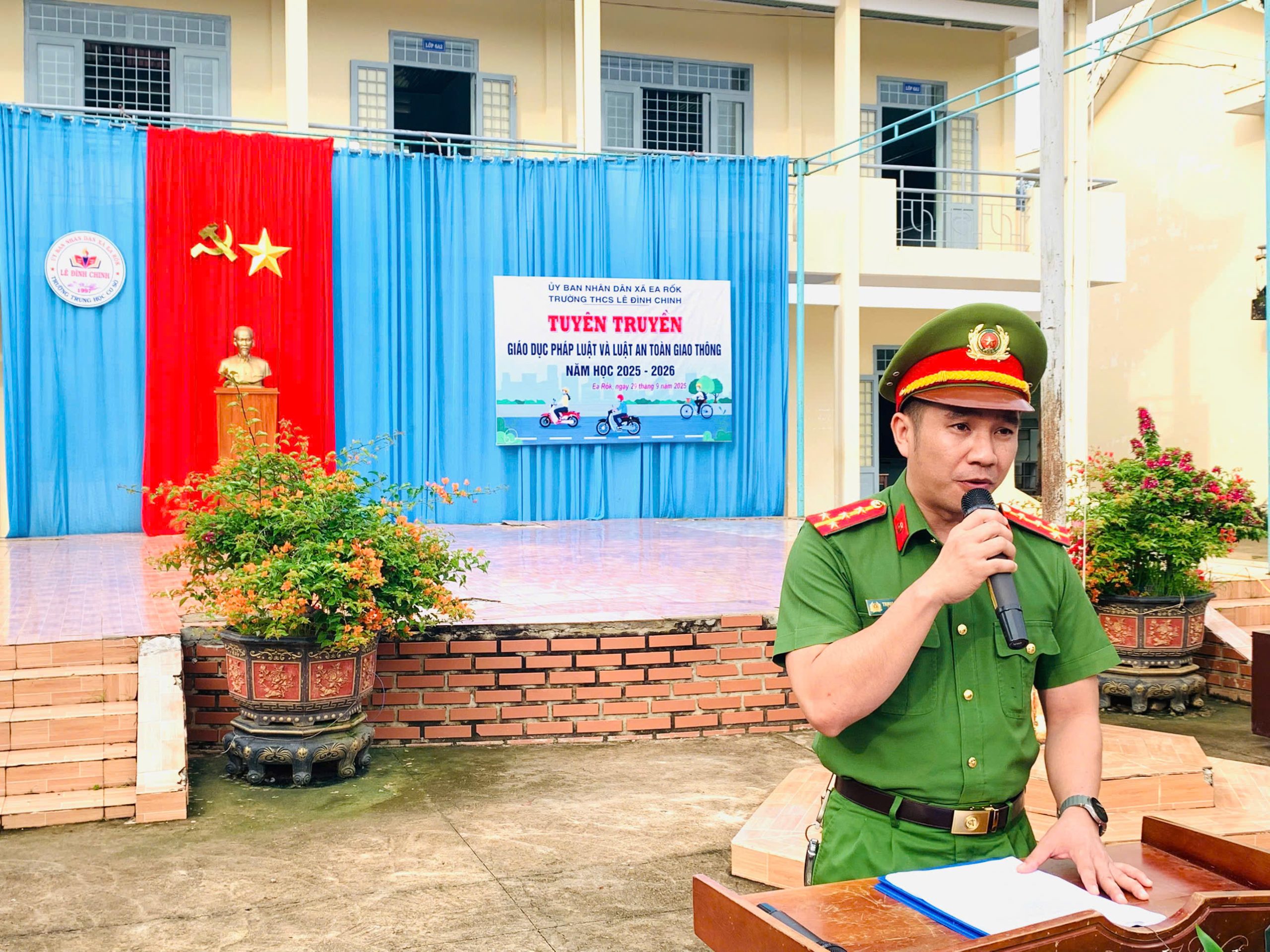 Sáng ngày 29/9/2025, Trường THCS Lê Đình Chinh (xã Ea Rốk, tỉnh Đắk Lắk) đã tổ chức hoạt động tuyên truyền, giáo dục pháp luật và Luật An toàn giao thông trong năm học 2025 – 2026.