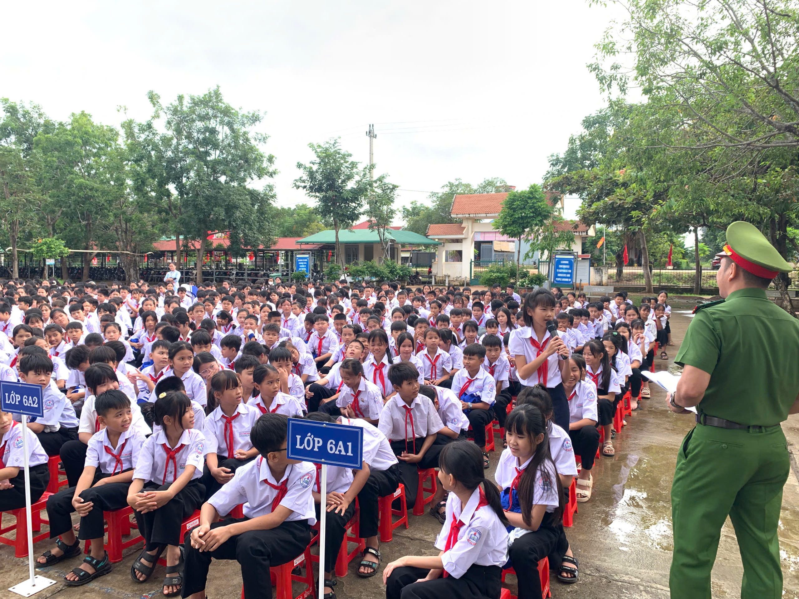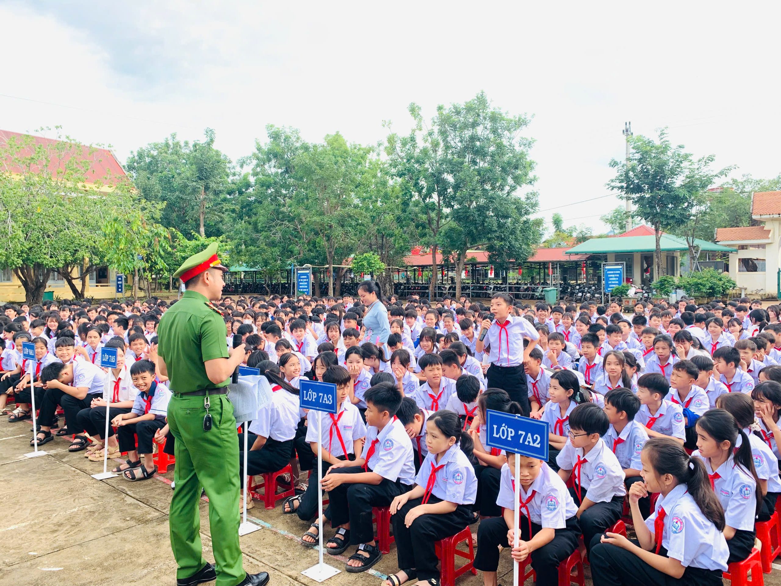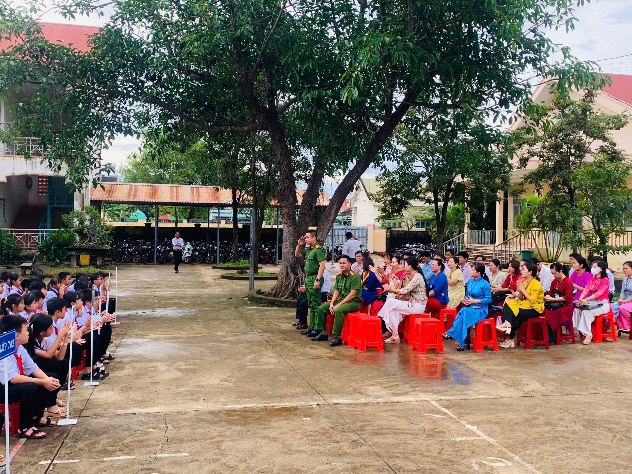 Tham dự buổi sinh hoạt có 45 cán bộ, giáo viên, nhân viên cùng toàn thể 822 học sinh của nhà trường. Đặc biệt, chương trình có sự hiện diện của đồng chí Thiếu tá Hoàng Thế Quang – Phó Trưởng Công an xã Ea Rốk cùng 2 đồng chí trong tổ công tác đã trực tiếp tuyên truyền và chia sẻ những kiến thức, kỹ năng cần thiết khi tham gia giao thông.