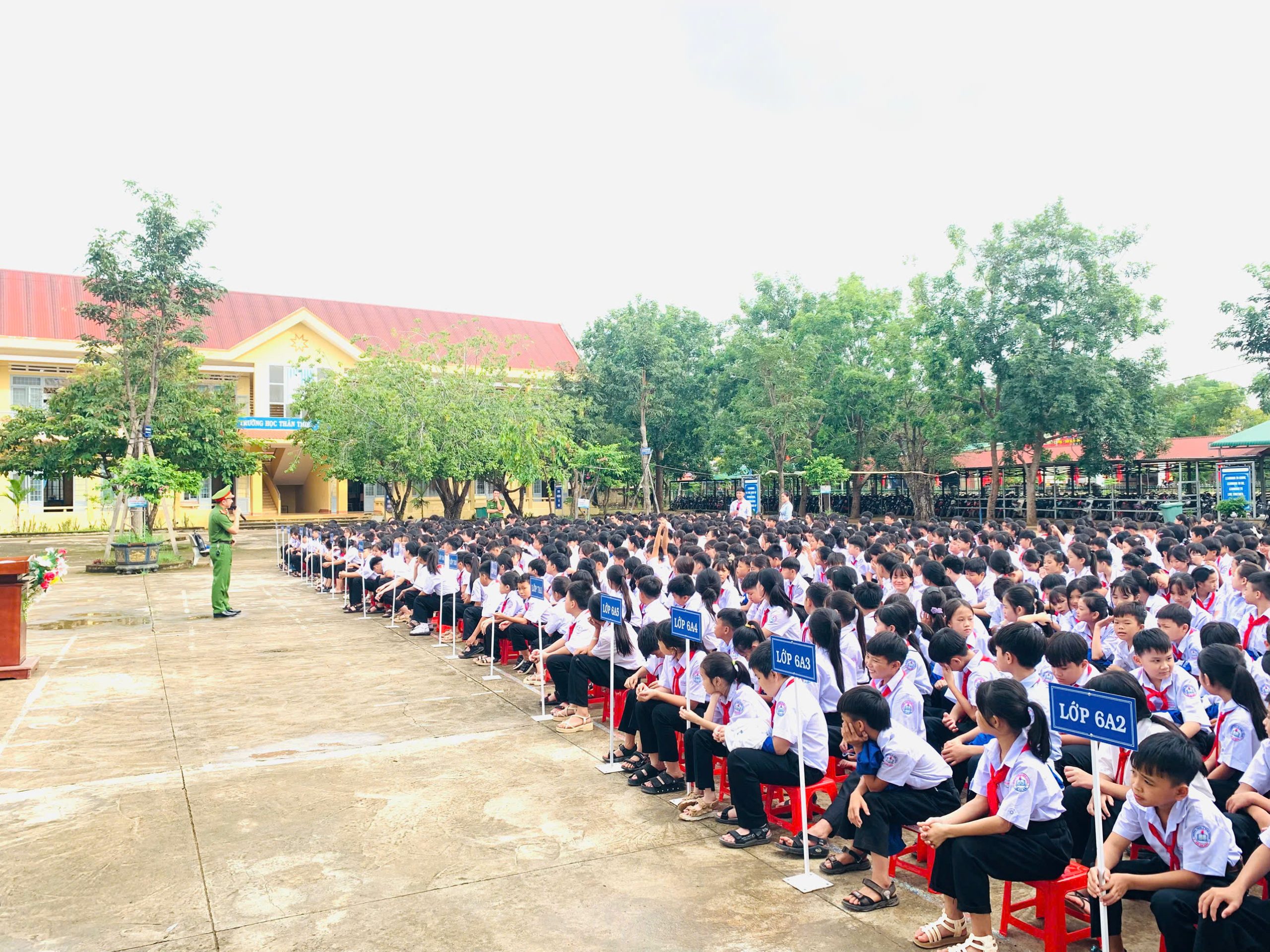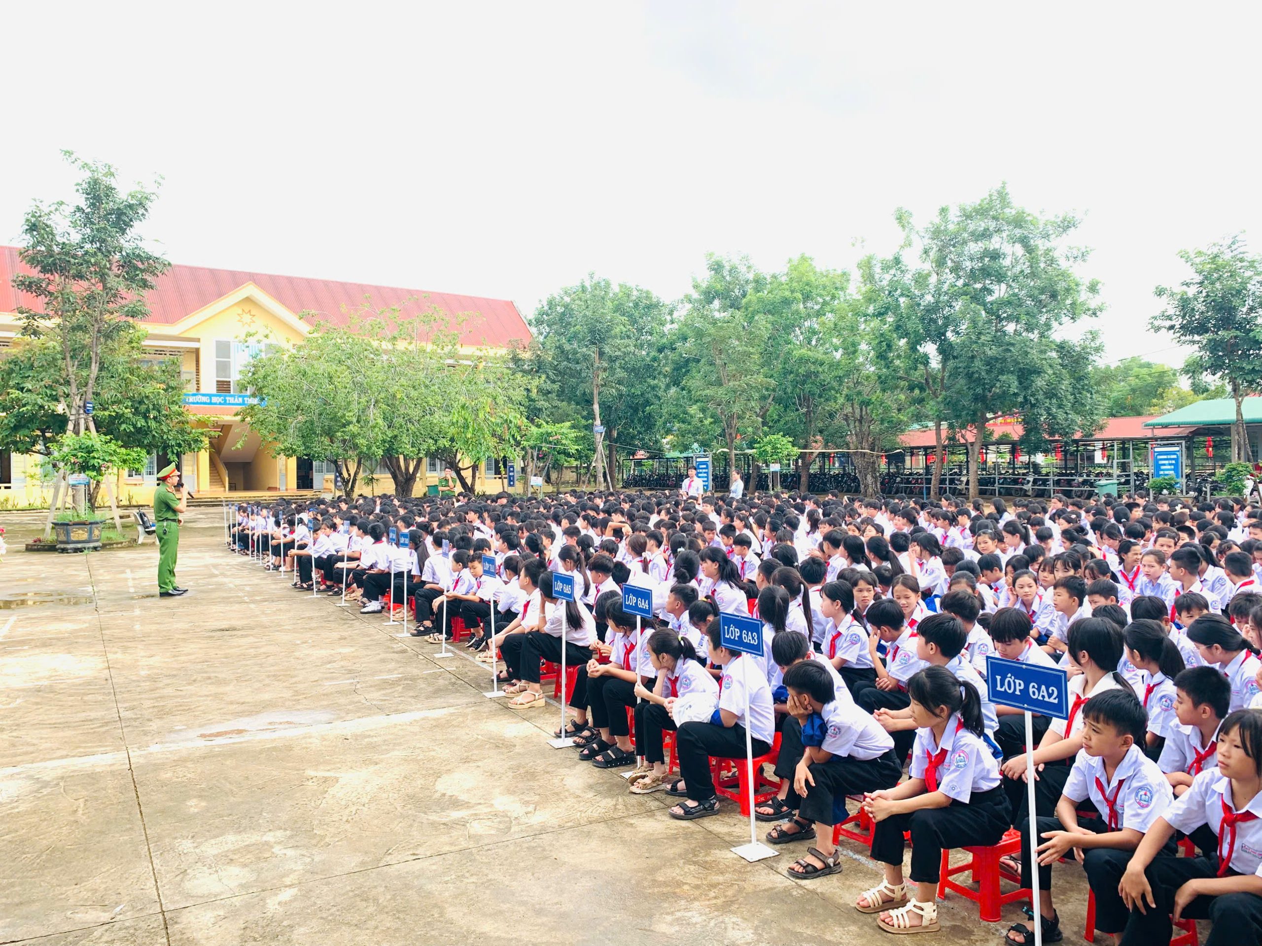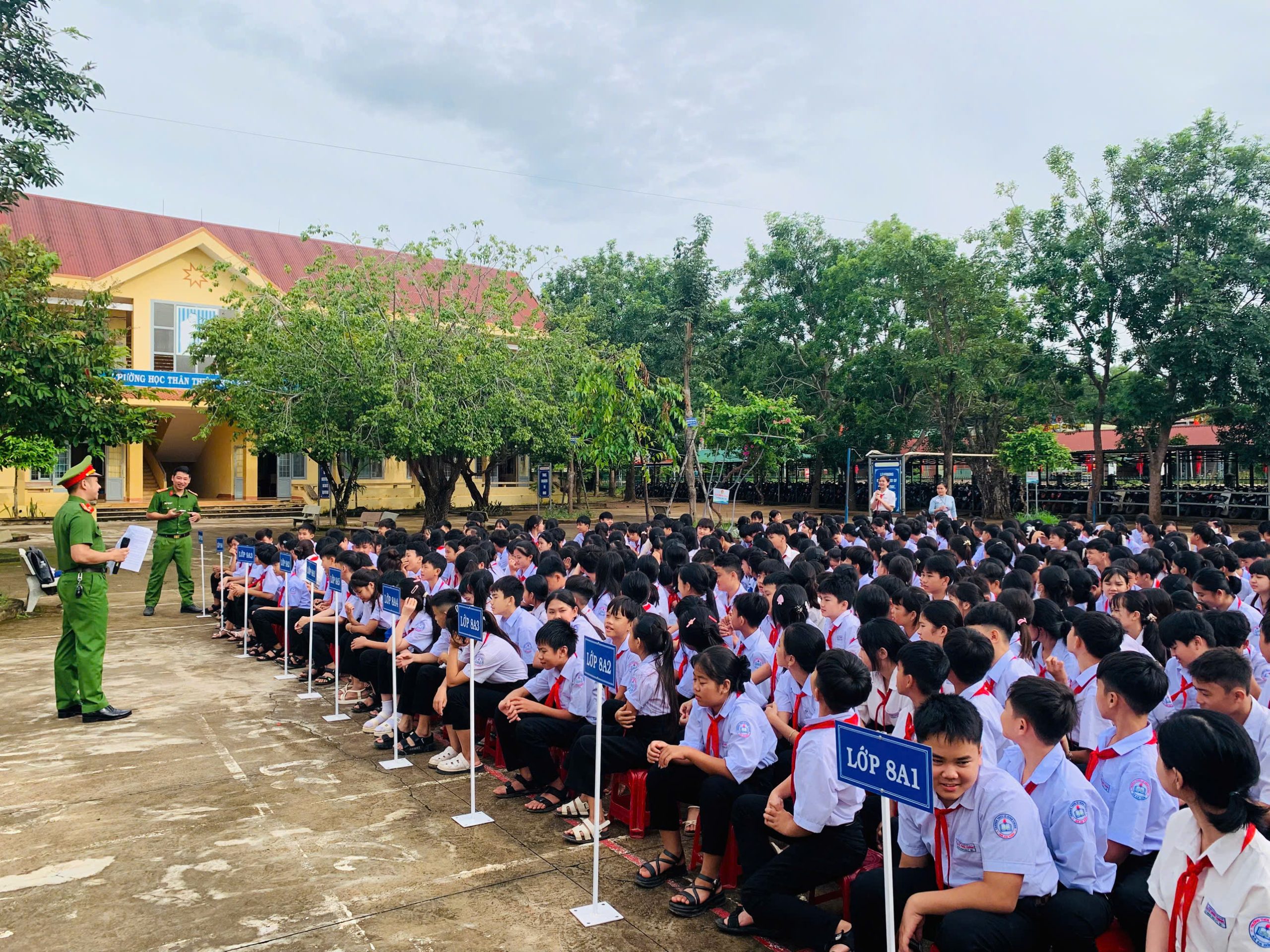 Tham dự buổi sinh hoạt có 45 cán bộ, giáo viên, nhân viên cùng toàn thể 822 học sinh của nhà trường. Đặc biệt, chương trình có sự hiện diện của đồng chí Thiếu tá Hoàng Thế Quang – Phó Trưởng Công an xã Ea Rốk cùng 2 đồng chí trong tổ công tác đã trực tiếp tuyên truyền và chia sẻ những kiến thức, kỹ năng cần thiết khi tham gia giao thông.