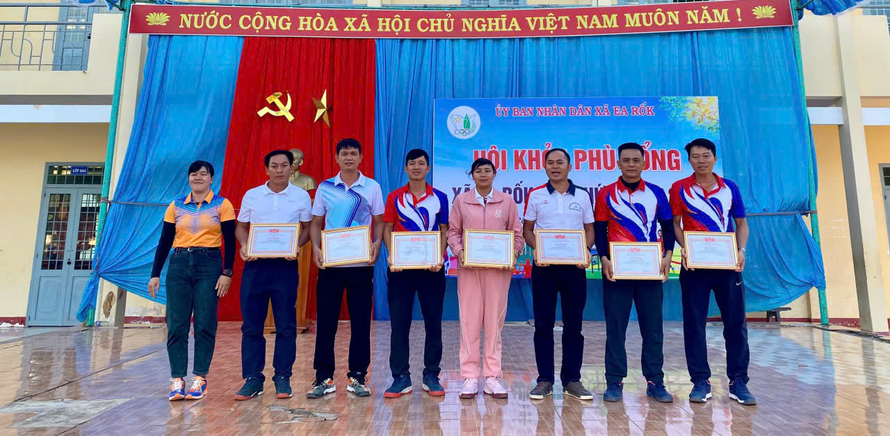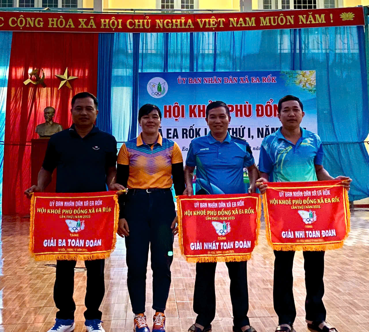 🏆 KẾT QUẢ NỔI BẬT: Các vận động viên đã giành nhiều huy chương Vàng, Bạc, Đồng ở các bộ môn thi đấu và mang về giải Nhất toàn đoàn, dẫn đầu Hội khỏe Phù Đổng xã Ea Rốk lần thứ I, năm 2025.